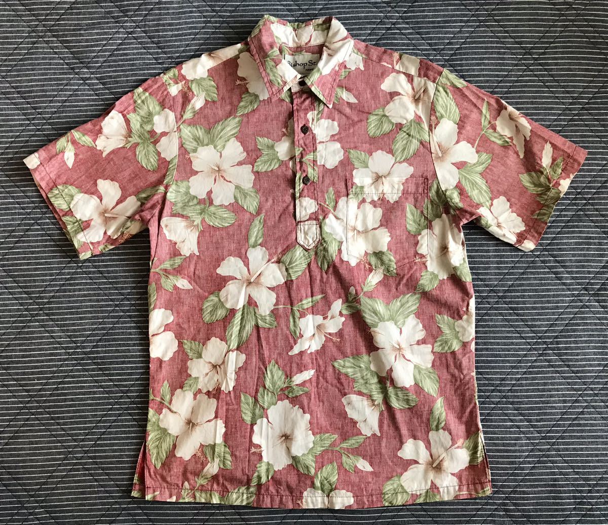 USEDのハワイで購入したBishop St apparelのアロハシャツです。 生地の表裏が逆になったデザインなので落ち着いた感じのアロハシャツです。 海外サイズのSで、平置にて採寸しました。 ・身丈 約71cm ・袖丈 約26cm ・肩幅 約45cm ・身幅 約54cm 素人採寸ですので、多少の誤差はご了承ください 素材は、綿100%です。 1度のみの着用で、特に目立つダメージもなくきれいな方かと思います。 USEDにご理解のうえ入札をお願いします。 ノークレーム・ノーリターンで、お願いいたします。 | |||