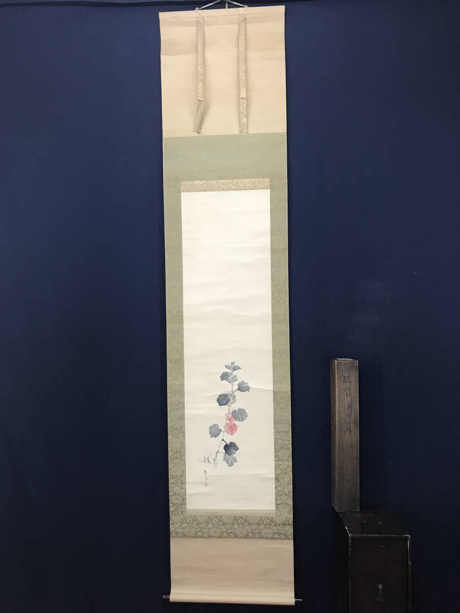 【作品状態】 本紙は紙本肉筆です。本紙は薄汚れ、多少の水シミ、全体に巻シワあります。表装は多少の時代感あります。
