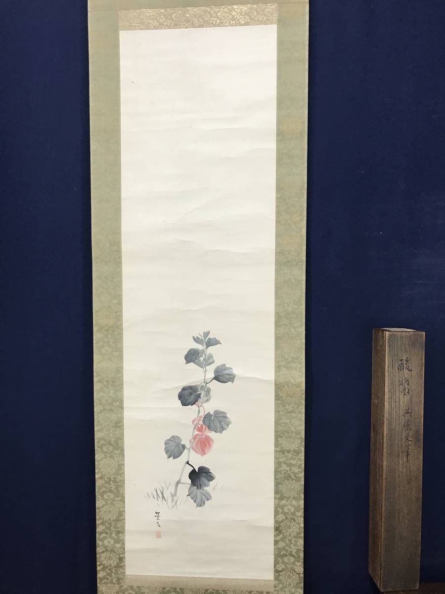 【作品状態】 本紙は紙本肉筆です。本紙は薄汚れ、多少の水シミ、全体に巻シワあります。表装は多少の時代感あります。