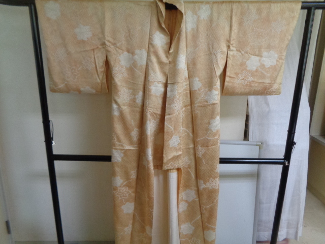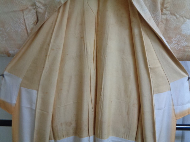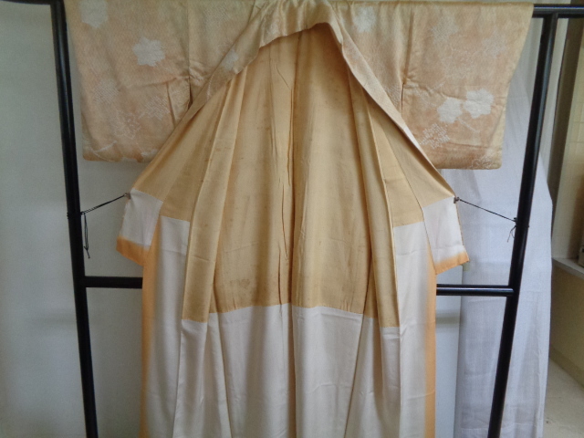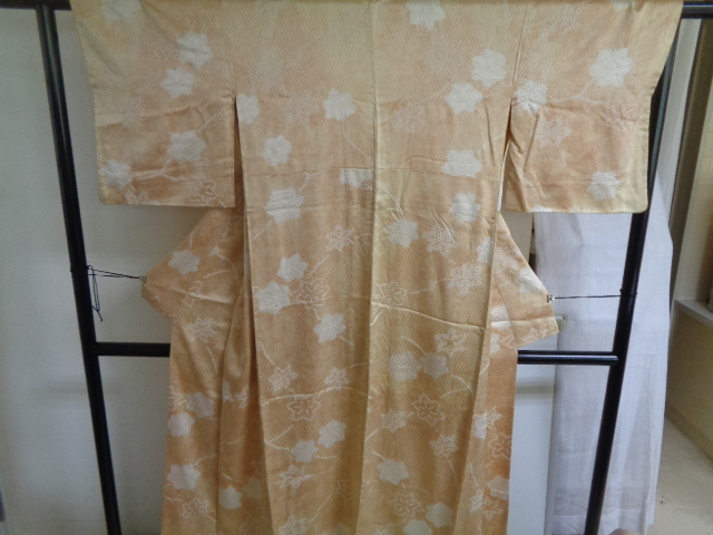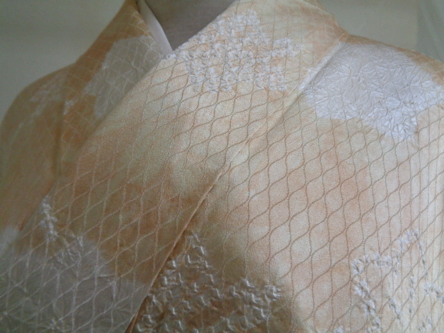 b567-80 アンティーク 正絹 広衿 ぼかし染め 網目地紋様 唐花絞り染文 身丈153センチ 裄66センチ