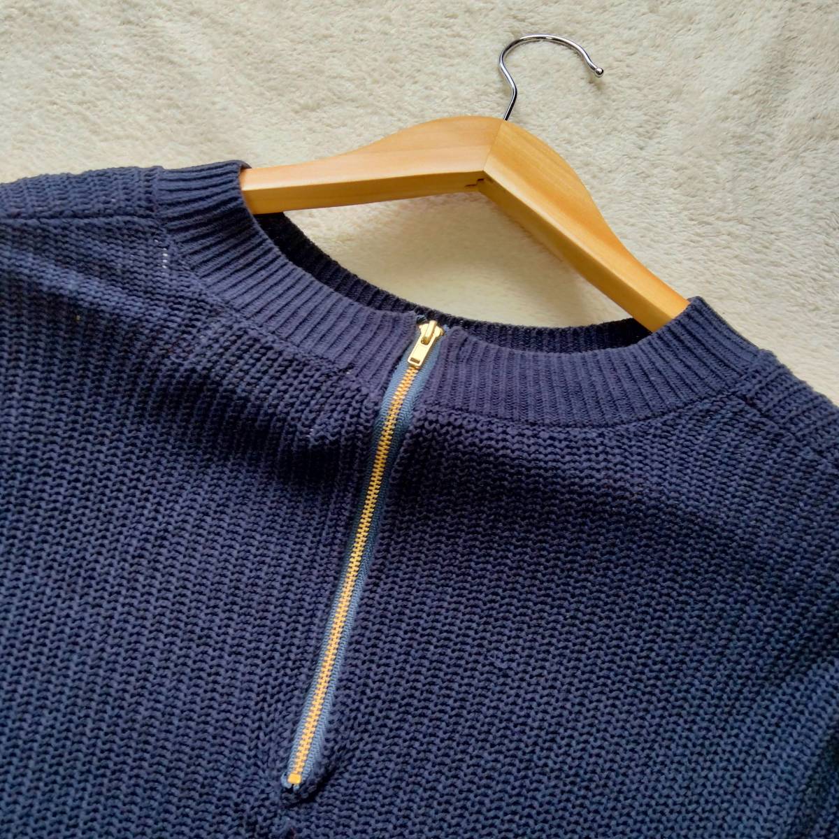 SNIDEL スナイデル ニット トップス プルオーバー 無地 バックファスナー クルーネック 長袖 ダークブルー フリーサイズ smm125