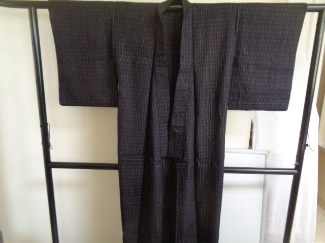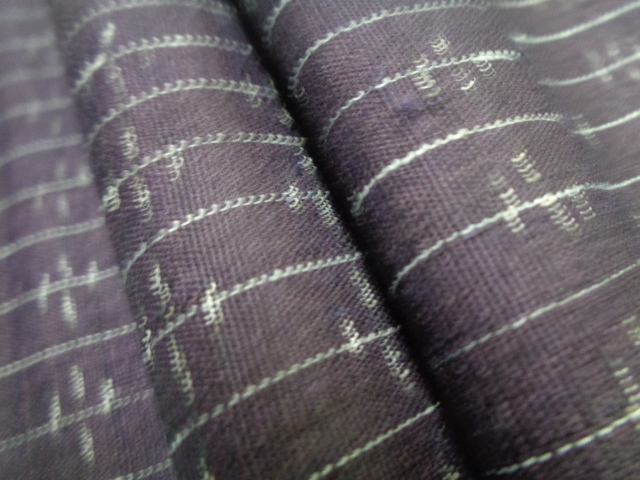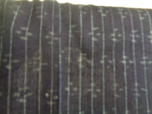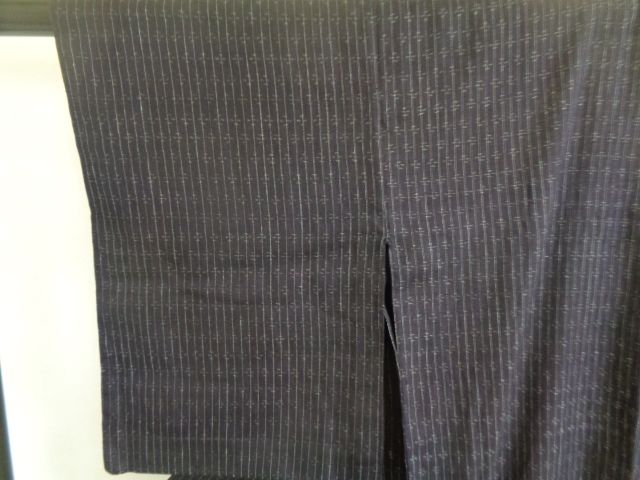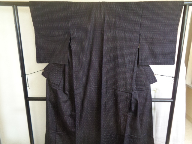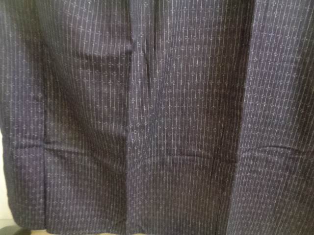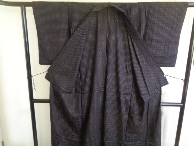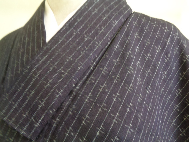 b557-80 アンティーク 正絹 単衣 藍 縞織文 着丈150センチ 裄61センチ