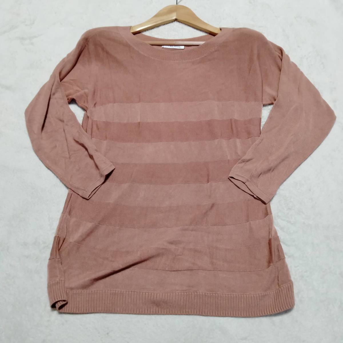 NEWYORKER ニューヨーカー トップス ニット セーター ラウンドネック ボーダー柄 長袖 レディース サイズL ブロンズ Smm54