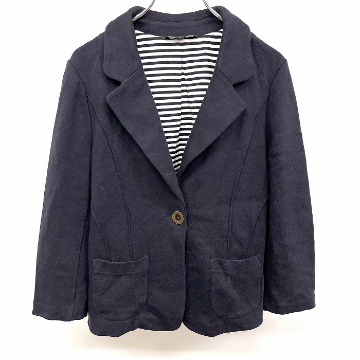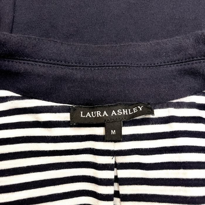 商品タイトル | LAURA ASHLEY ローラアシュレイ M レディース 女性 カットソーテーラードジャケット 1つボタン留め 7分袖 背中にボーダー柄裏地 綿100% 紺 |