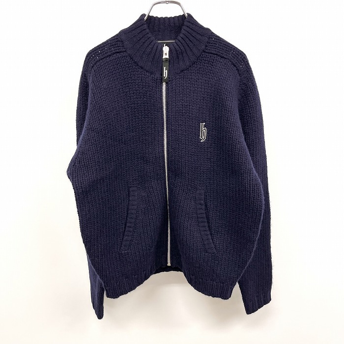 商品タイトル | 【新品】DJ HONDA ディージェーホンダ M メンズ ニットジャケット ジップアップカーディガン ブルゾン 裏地無し ロゴ 長袖 ウール100% 紺 |