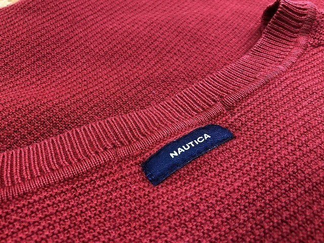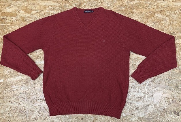 | 商品タイトル | NAUTICA ノーティカ Sサイズ メンズ セーター ストレッチ ニット Vネック ロゴ刺繍 長袖 綿×ナイロン×ポリウレタン くすみレッド |