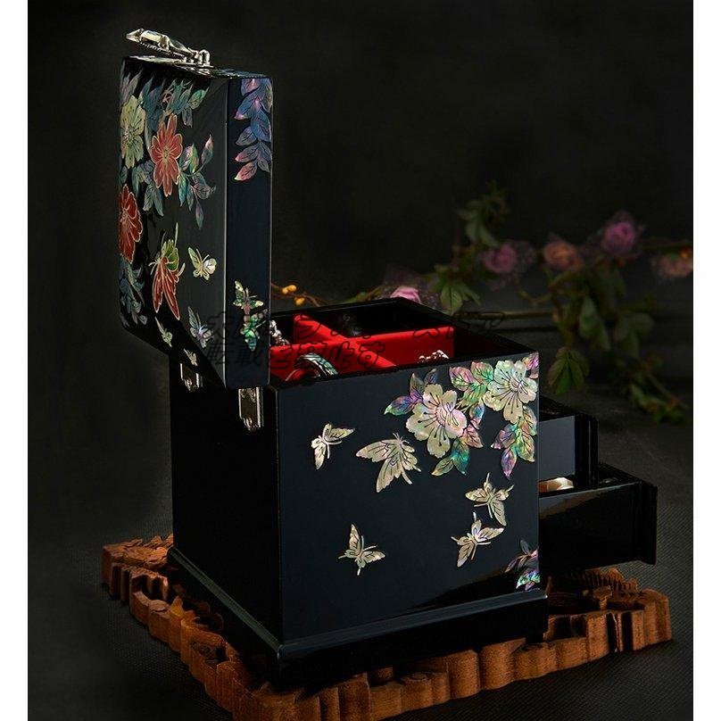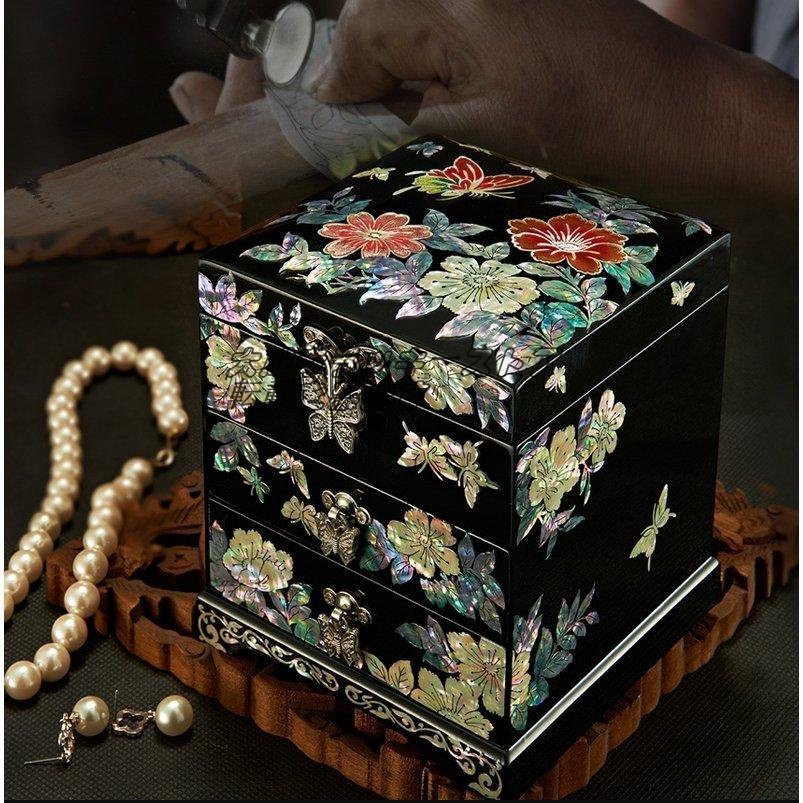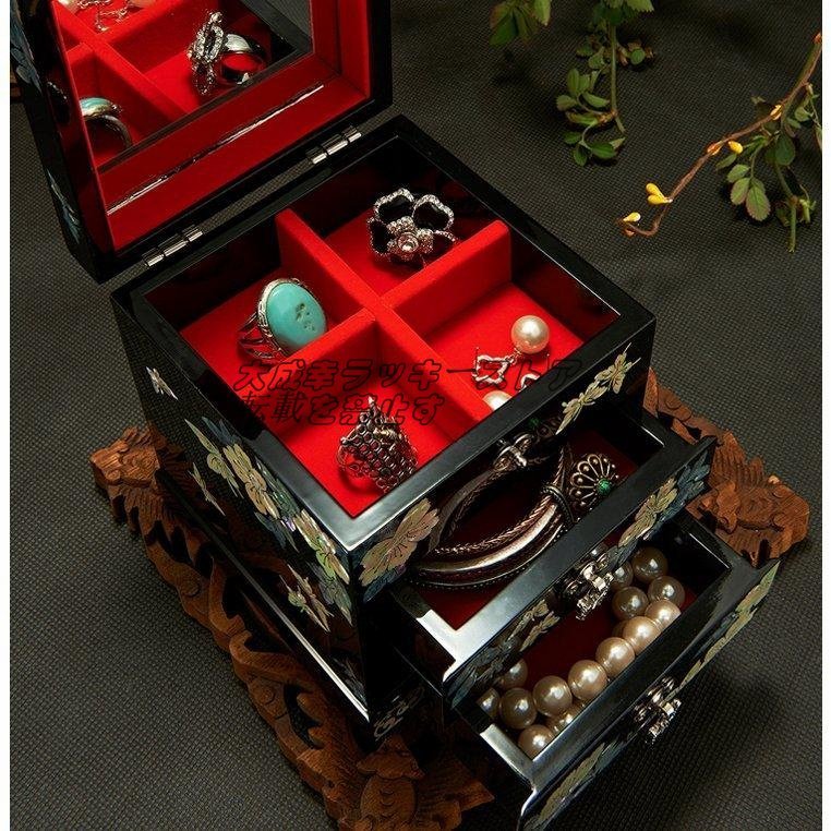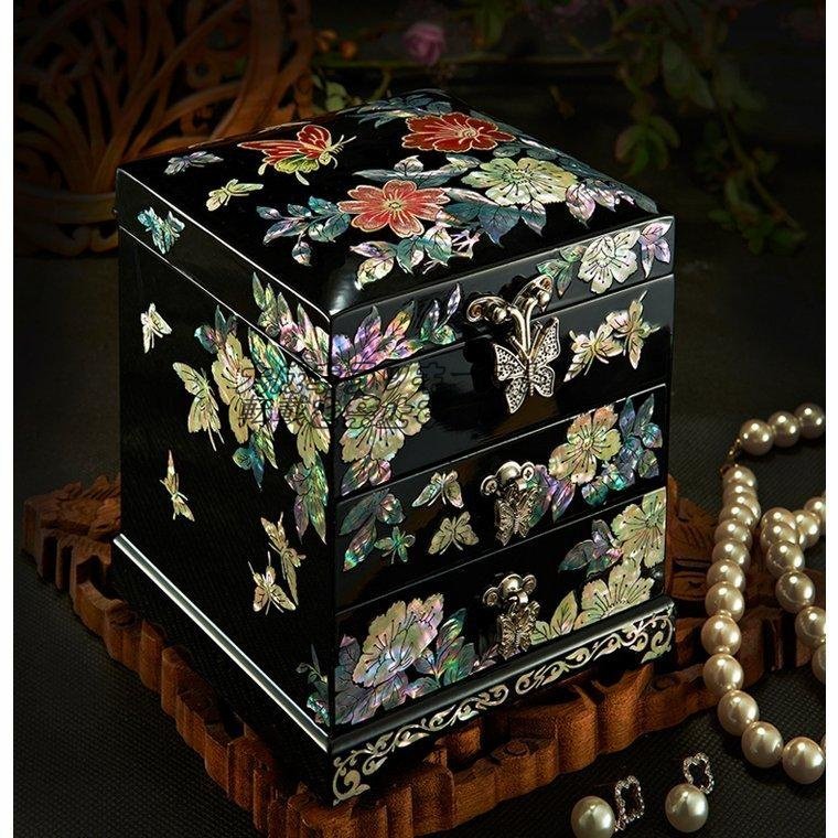良い品質 漆器 天然シェル 木製  純手作り製作 真珠層ラッカー 貝殻ジュエリーボックス 宝石箱 結婚アクセサリーケース 箱 多層 F346