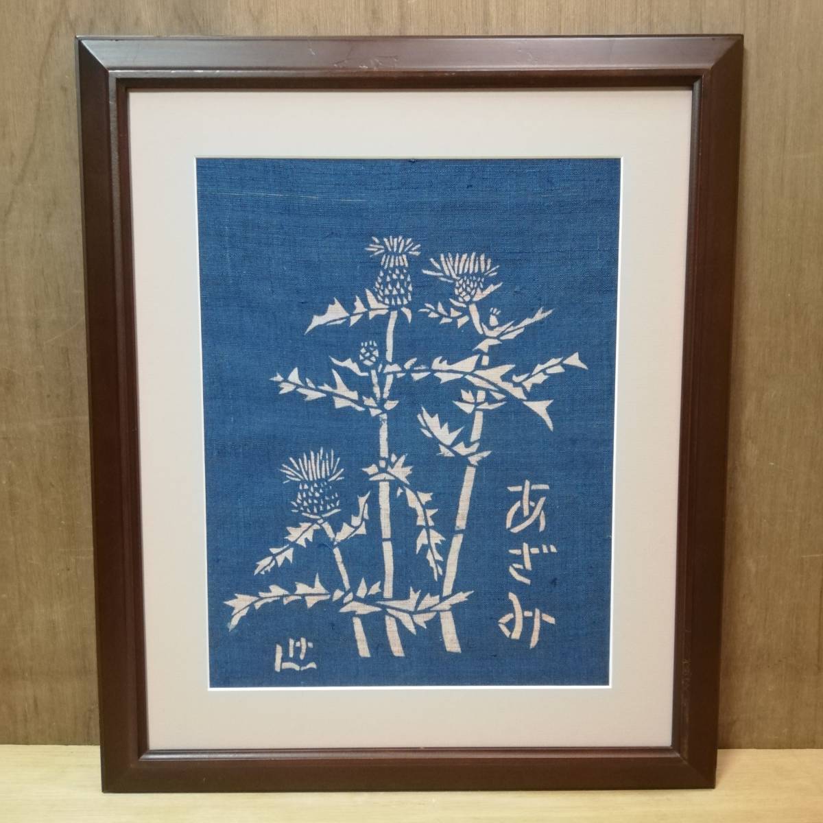 郡憲輔 あざみ 徳島藍型絵染 切絵 古緒里民芸店 おもちゃ筥 40cm×47cm