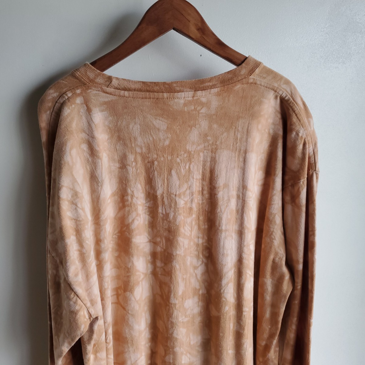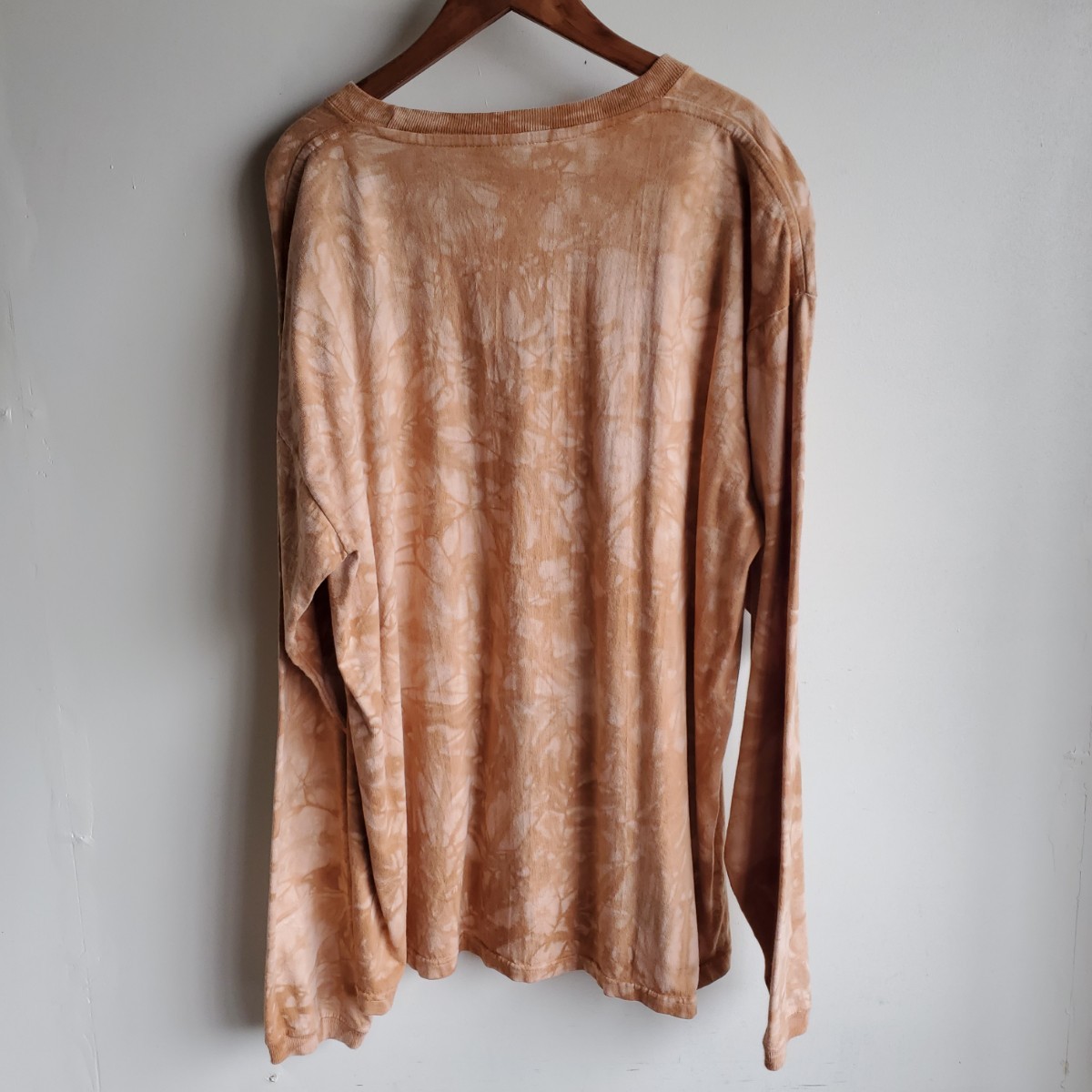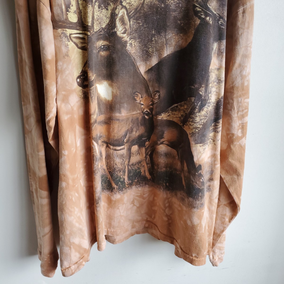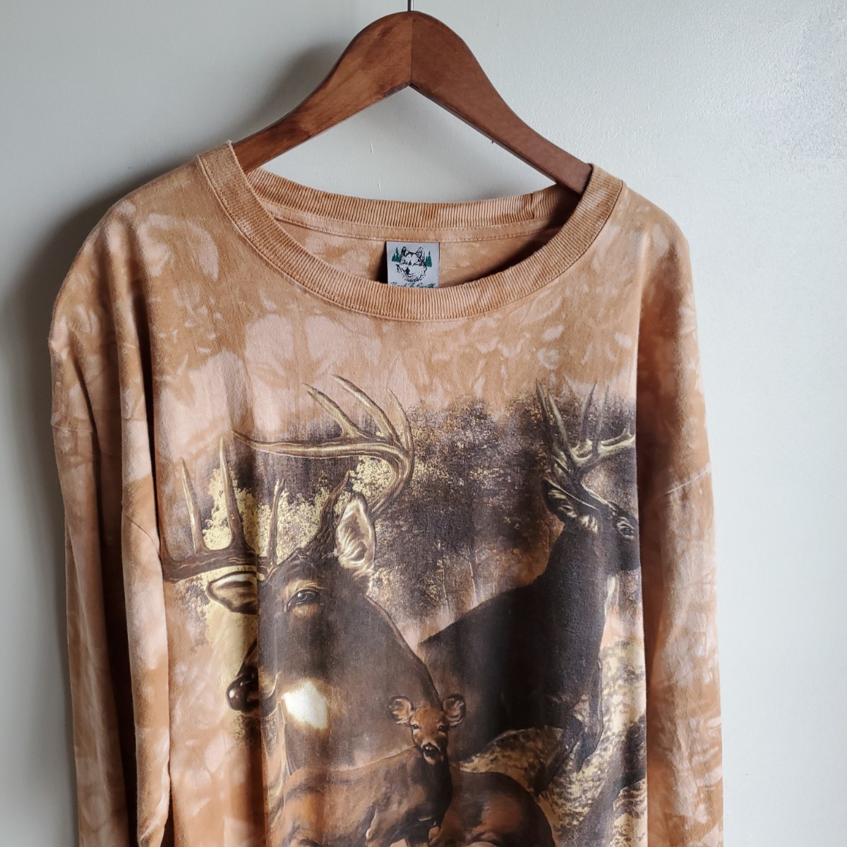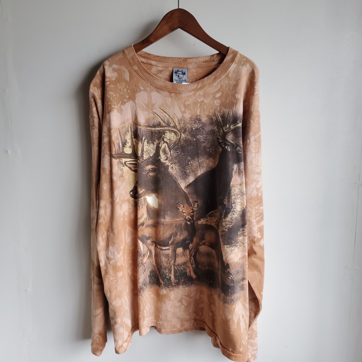 394◆BACK TO EARTH アニマルプリント ロンT sizeL 茶系 シカ 鹿 タイダイ 古着 USED 中古