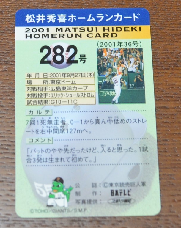 2001年 松井秀喜 55 巨人 プロ野球 ホームラン 282号 サイン入り トレーディングカード  美品
