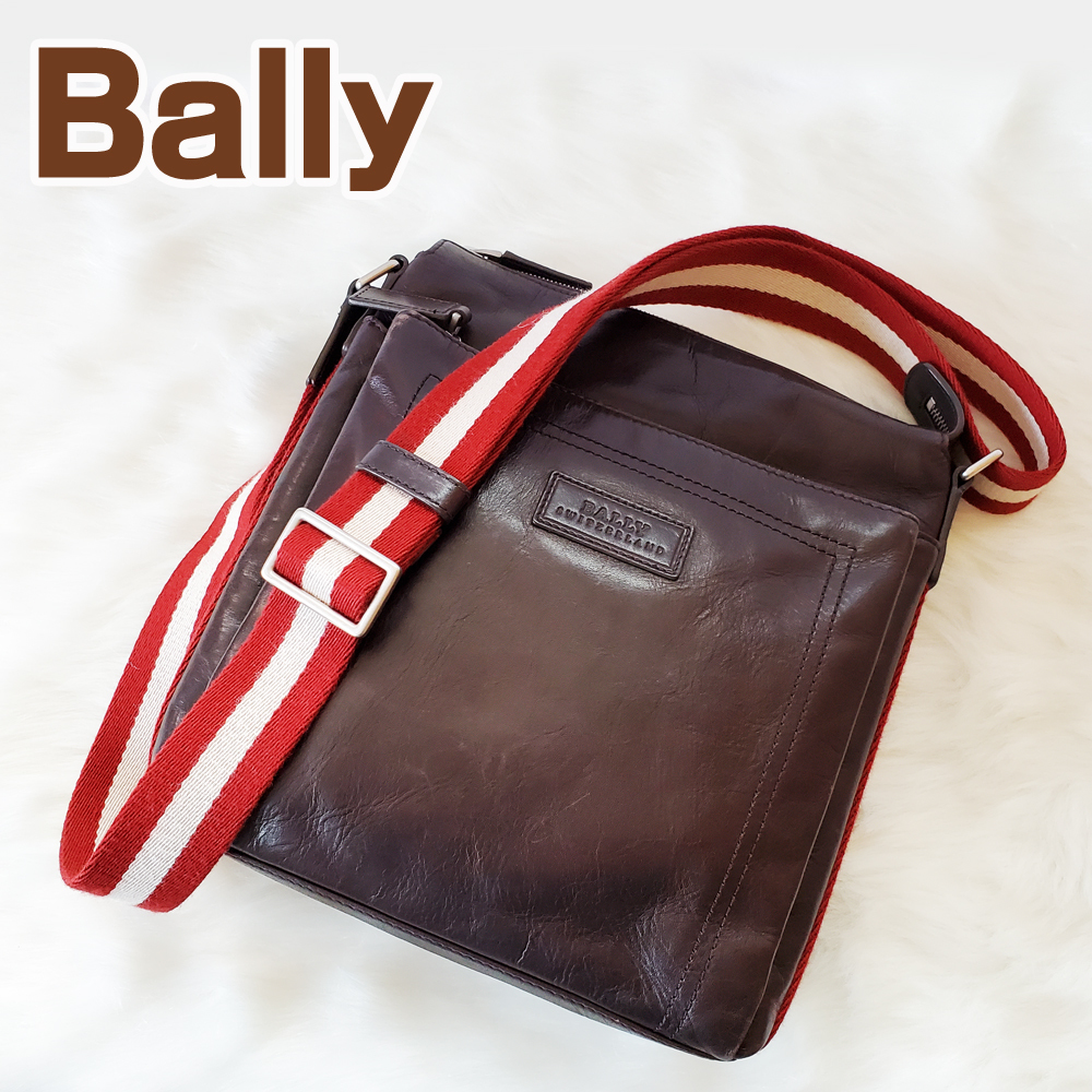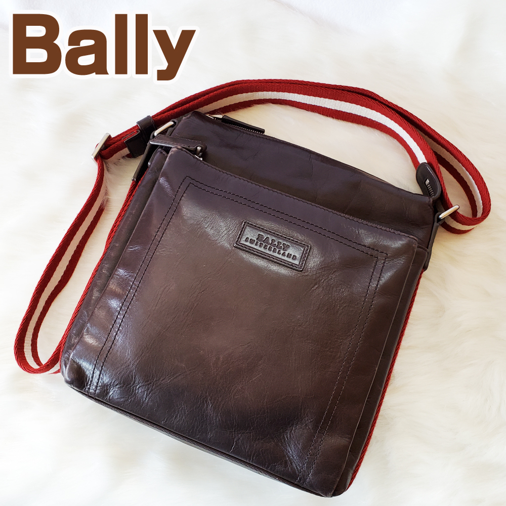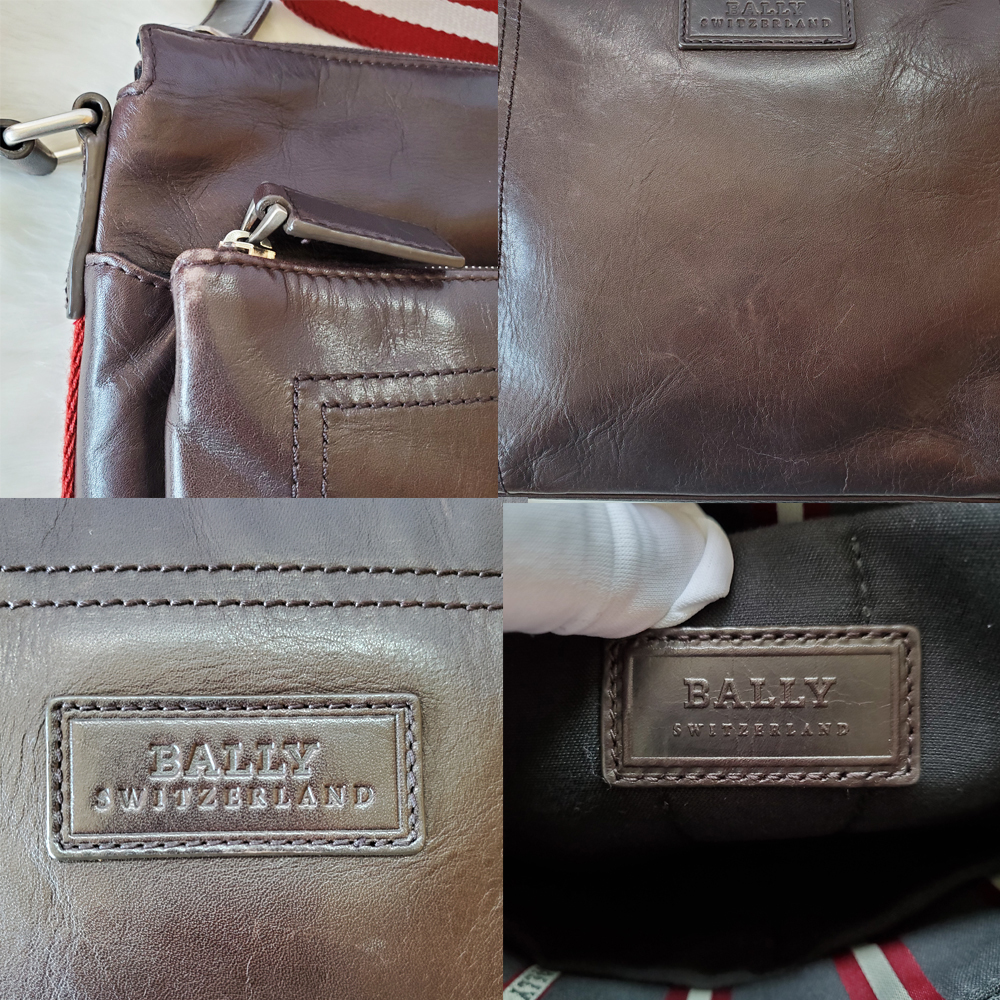 【美品】BALLY バリートレインスポッティング ショルダーバッグ 本革 レザー ダークブラウン茶色 レッド ホワイト