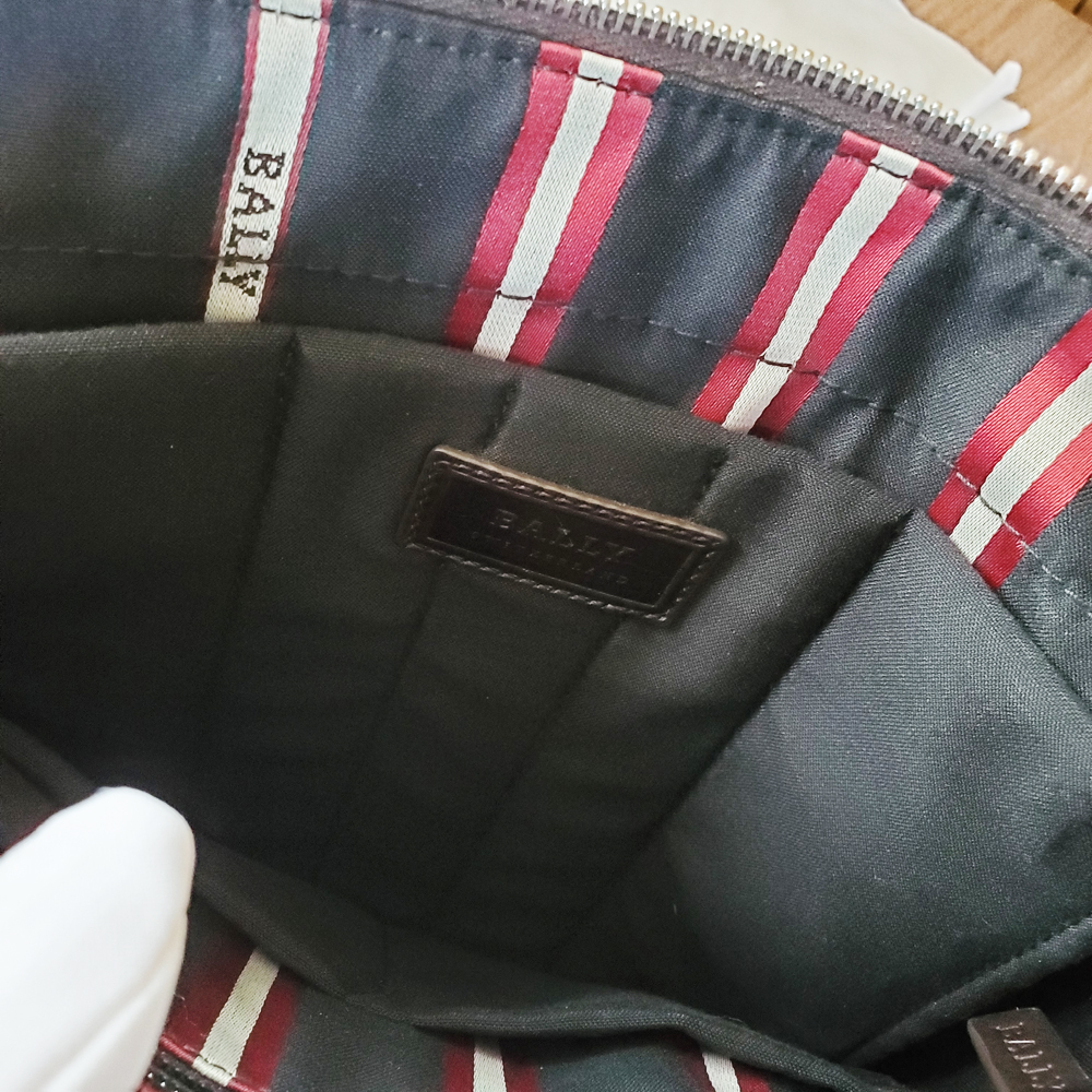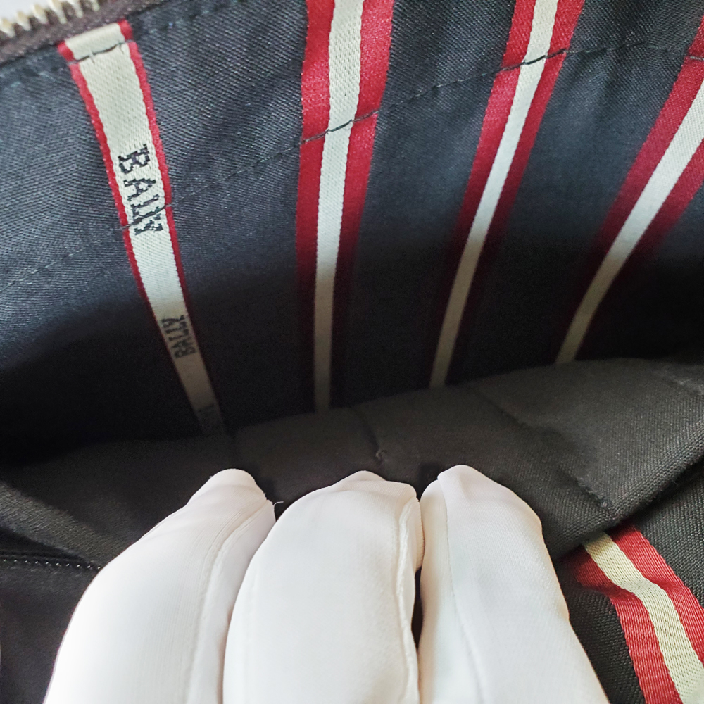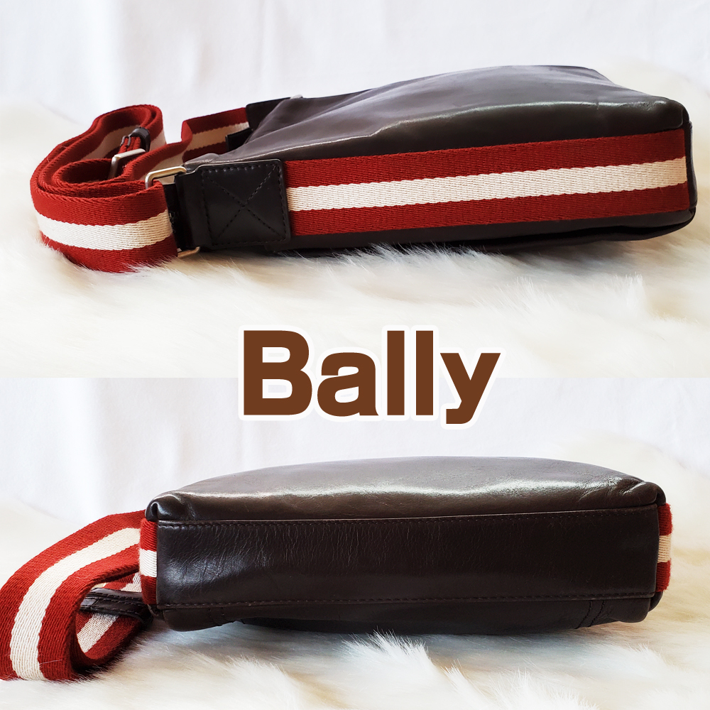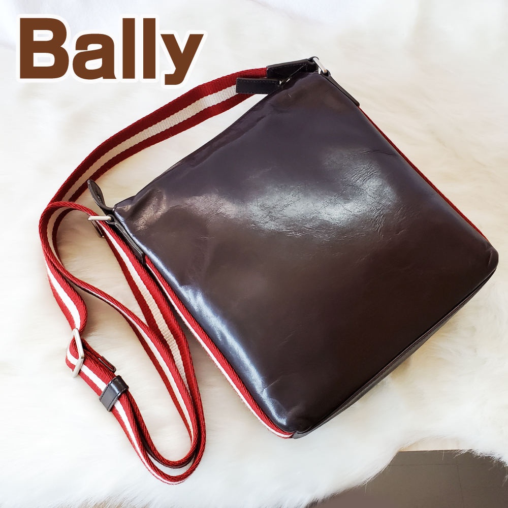 【美品】BALLY バリートレインスポッティング ショルダーバッグ 本革 レザー ダークブラウン茶色 レッド ホワイト