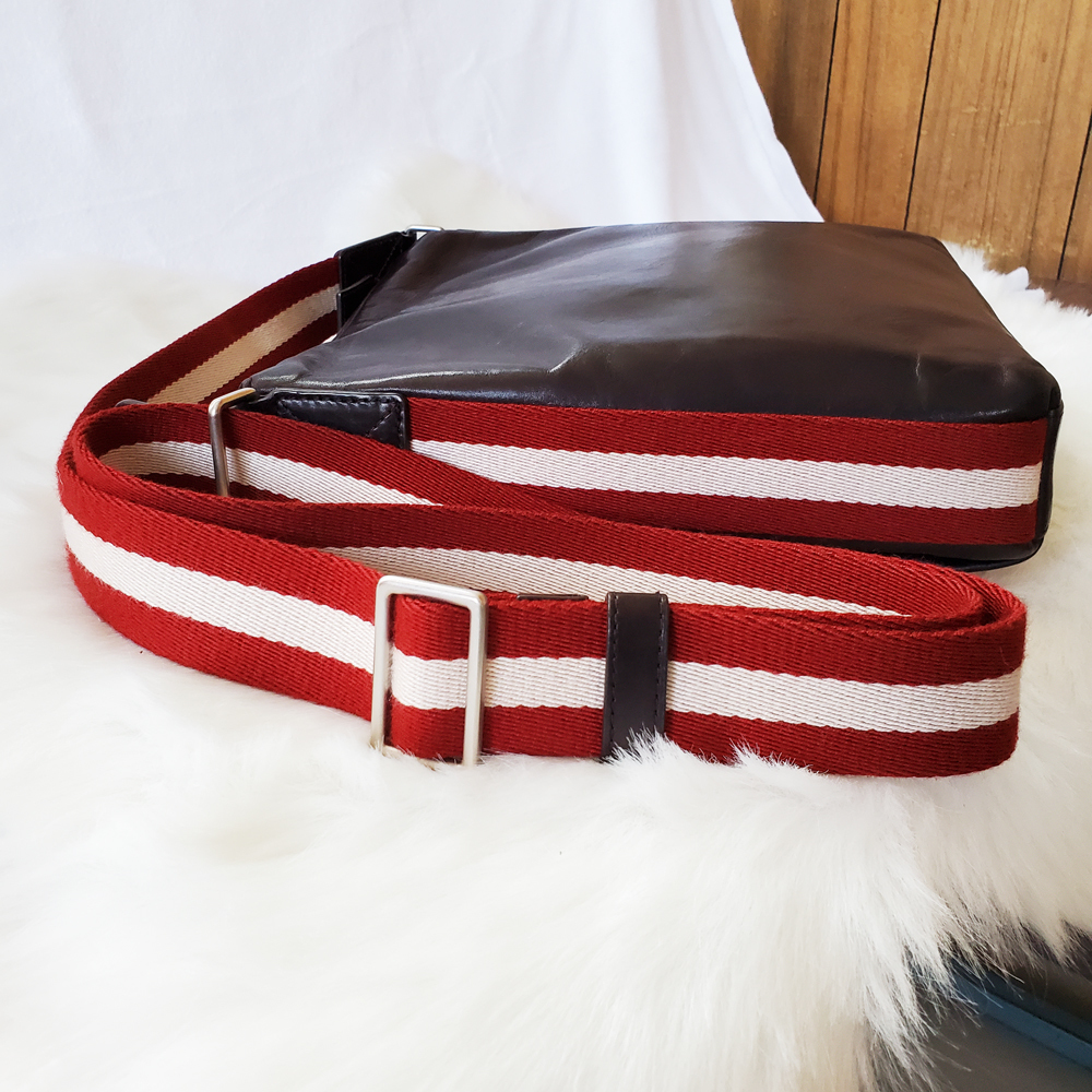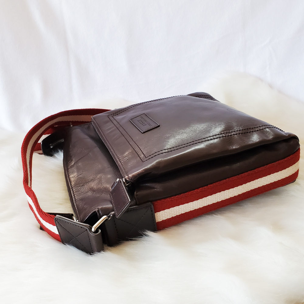 【美品】BALLY バリー  トレインスポッティング ショルダーバッグ メッセンジャーバッグ 斜め掛け レザー ダークブラウン茶色 レッド ホワイト