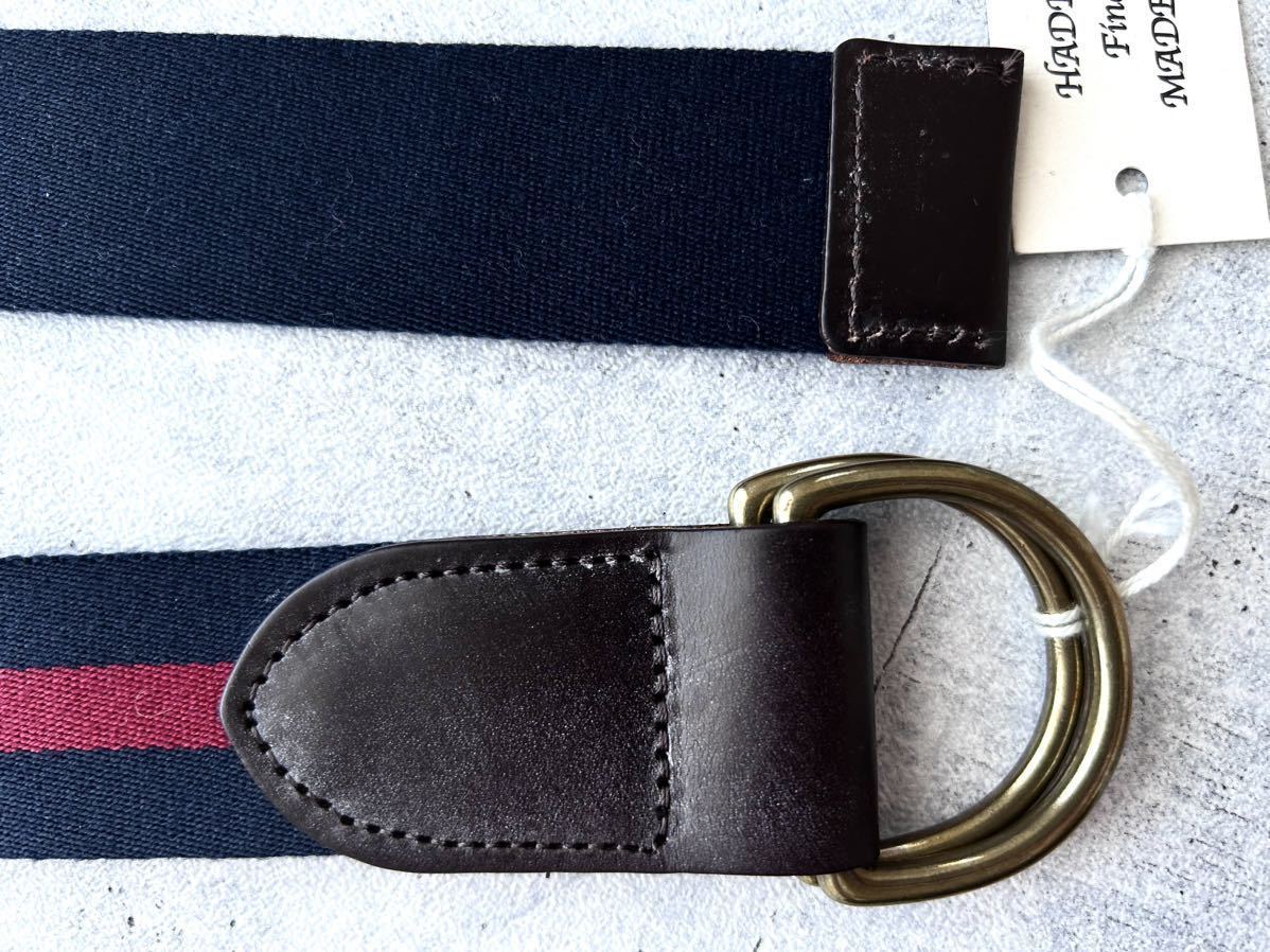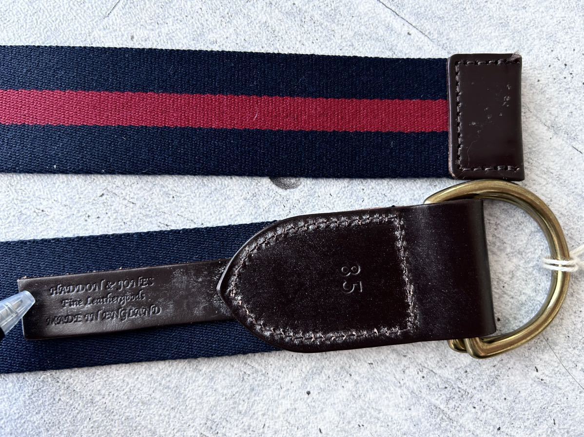 新品 イギリス製 ハッドンアンドジョーンズ リングベルト ウェビングベルト  ブライドルレザー HADDON&JONES ダブルリング 玉7592 コットン × ブライドルレザー イングランド製 MADE IN ENGLAND ハッドン&ジョーンズ 真鍮バックル 牛革
