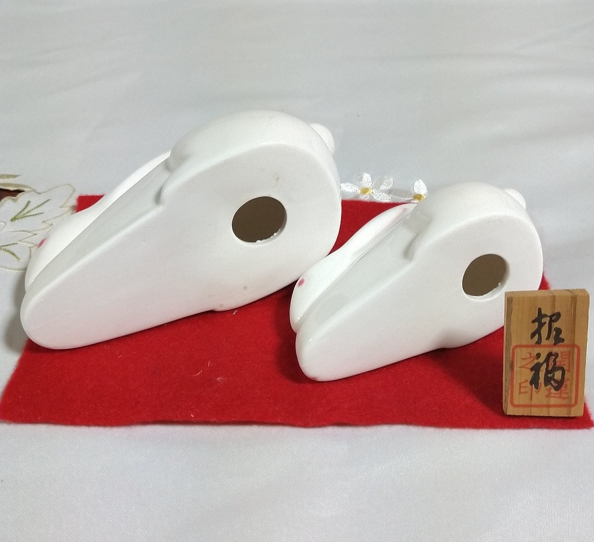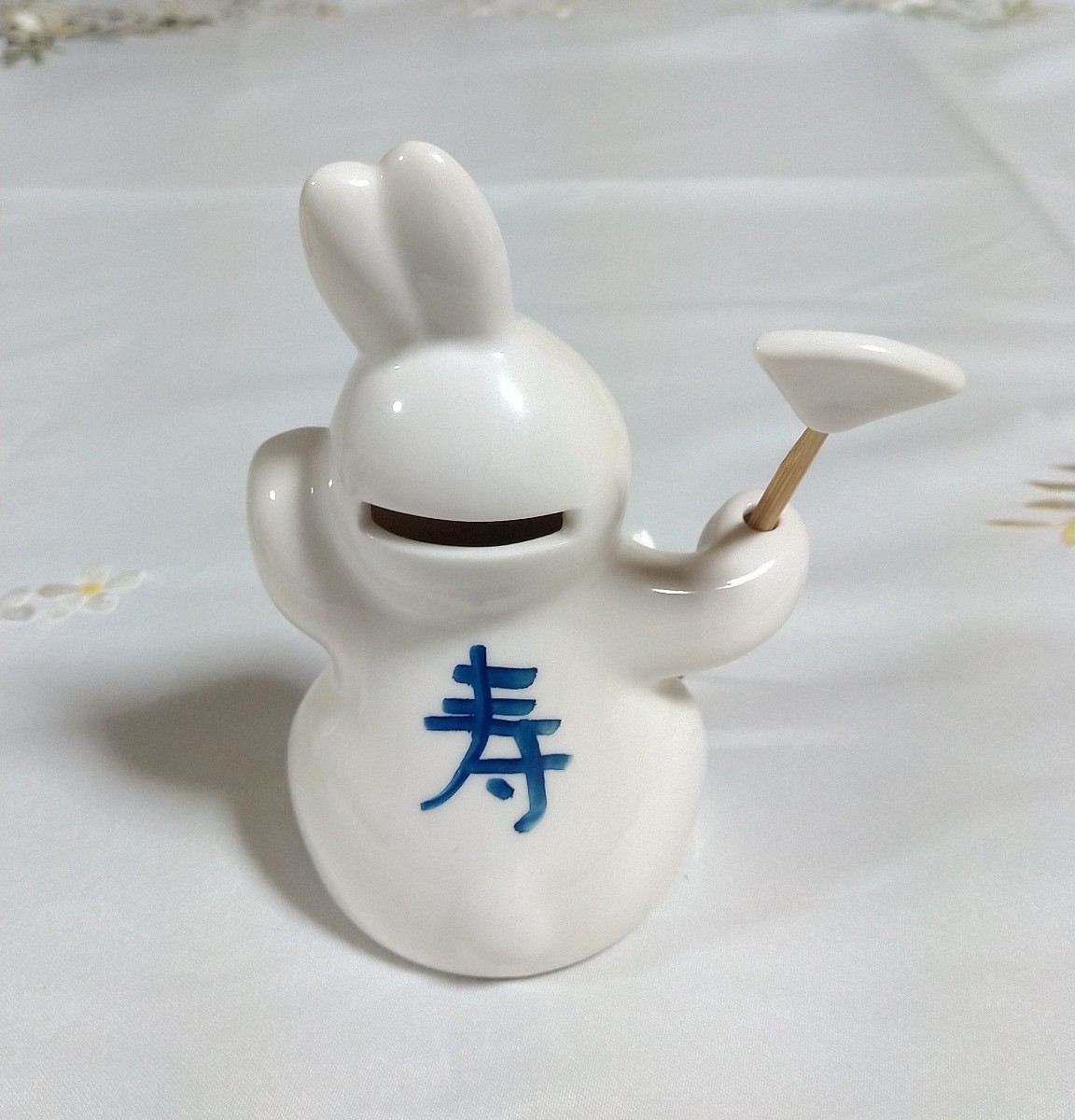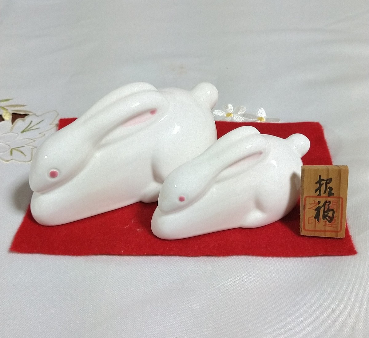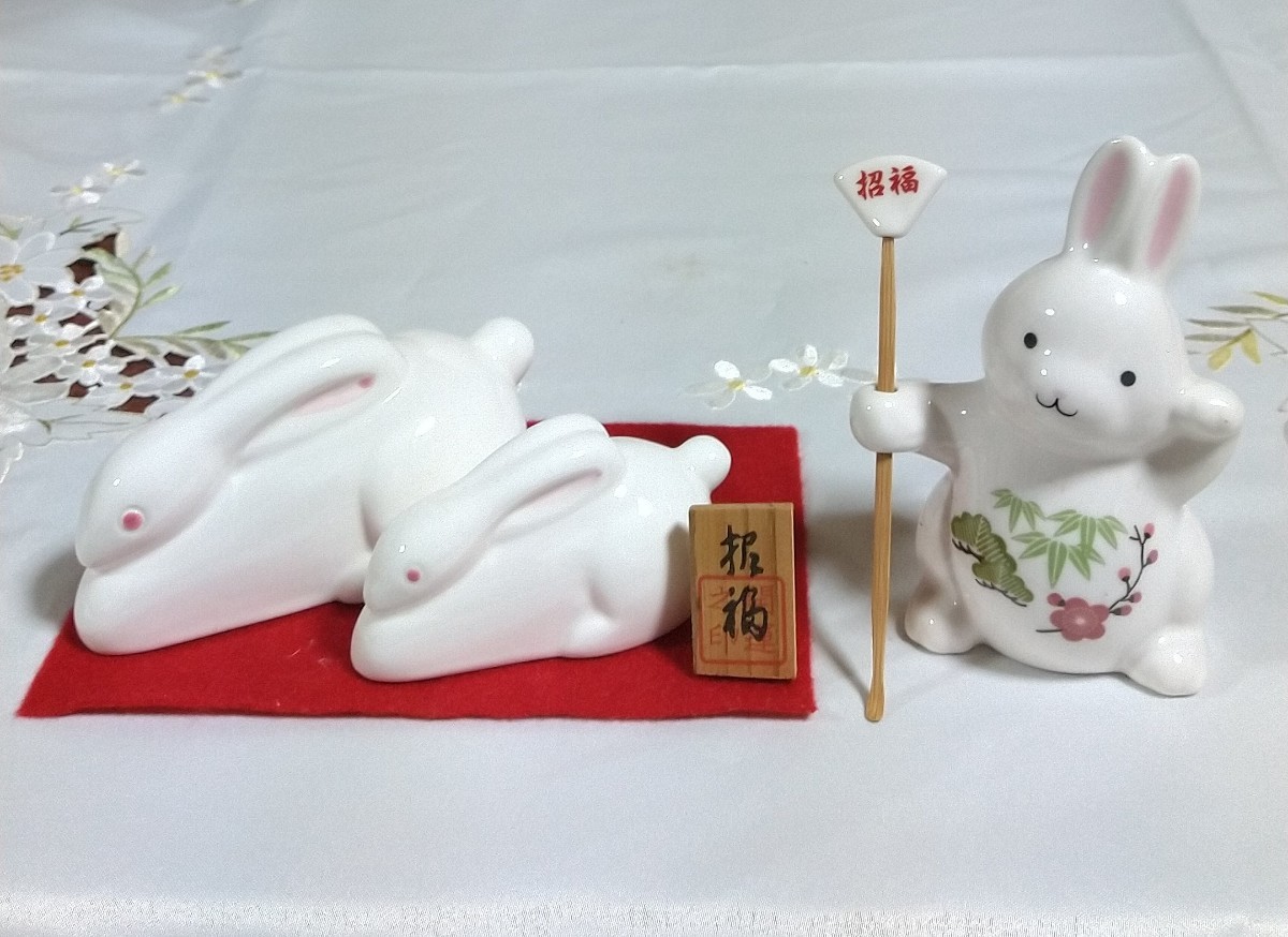 昨年の干支、招福うさぎの陶器置物、2種類です。