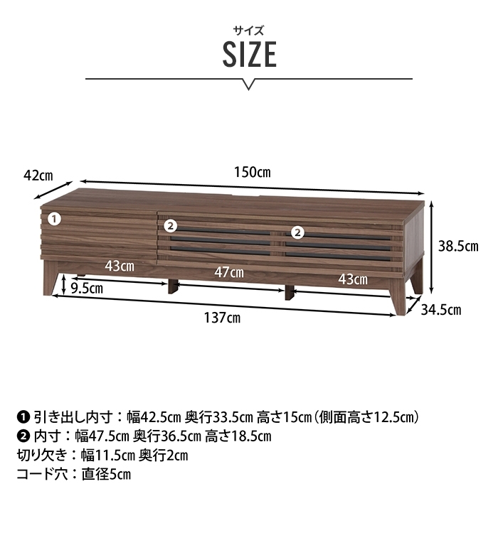 | [全体]約幅150×奥行42×高さ38.5cm [脚部高さ]約10cm |