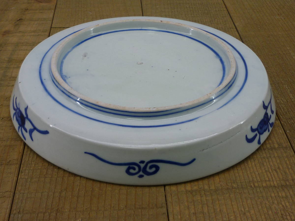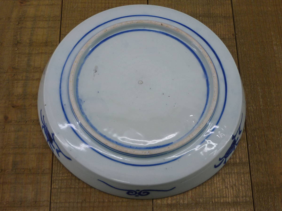 骨董 古伊万里 江戸幕末~明治初期 染付七寸大皿 松唐子蝶文輪宝縁 G13514