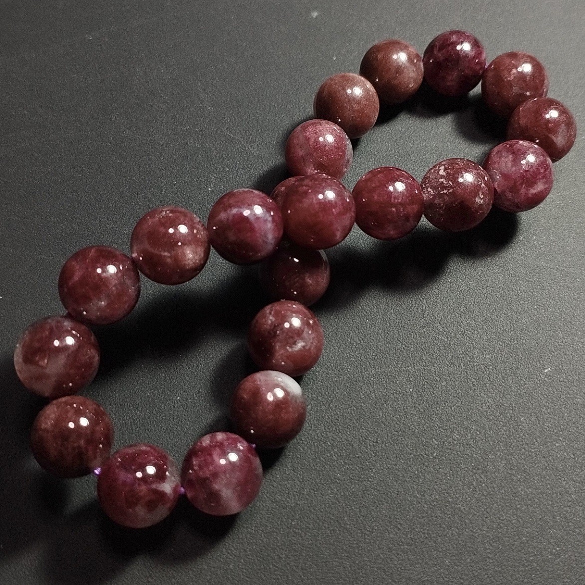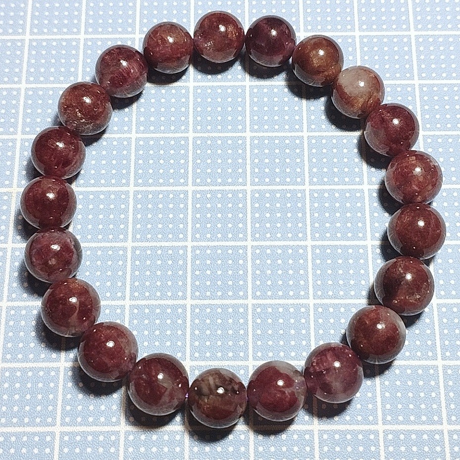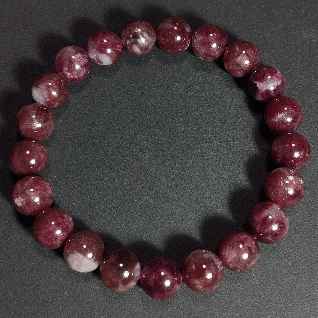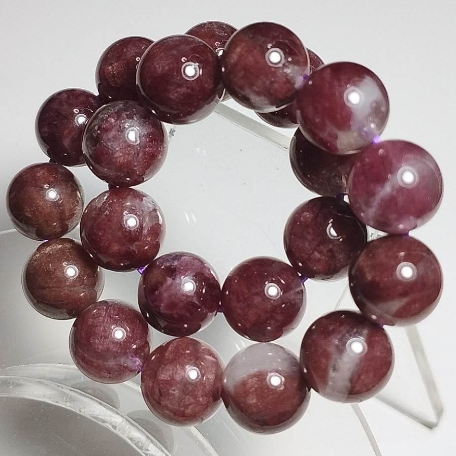 ピンクトルマリン部分の色が濃いめなので、パープルやレッドトルマリン(ルベライト)寄りのカラーに見えるブレスレットです。