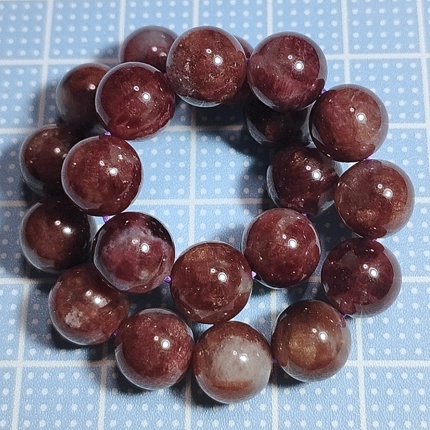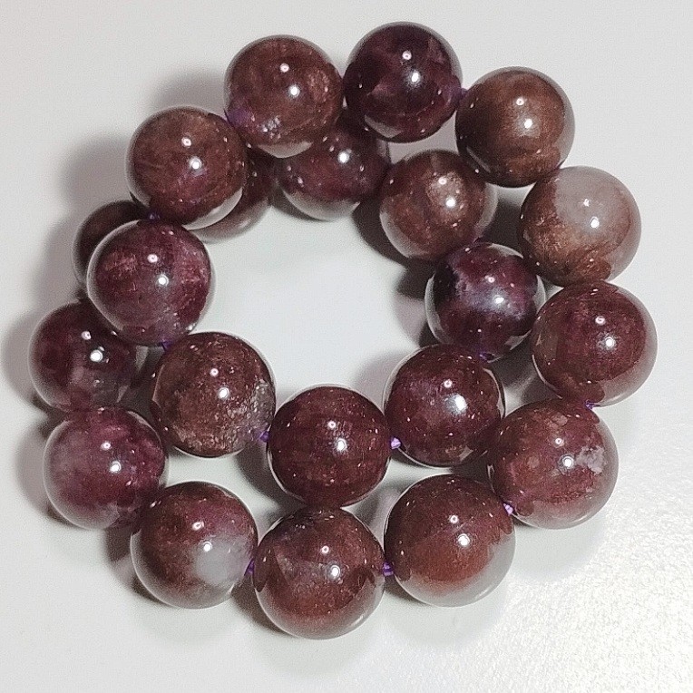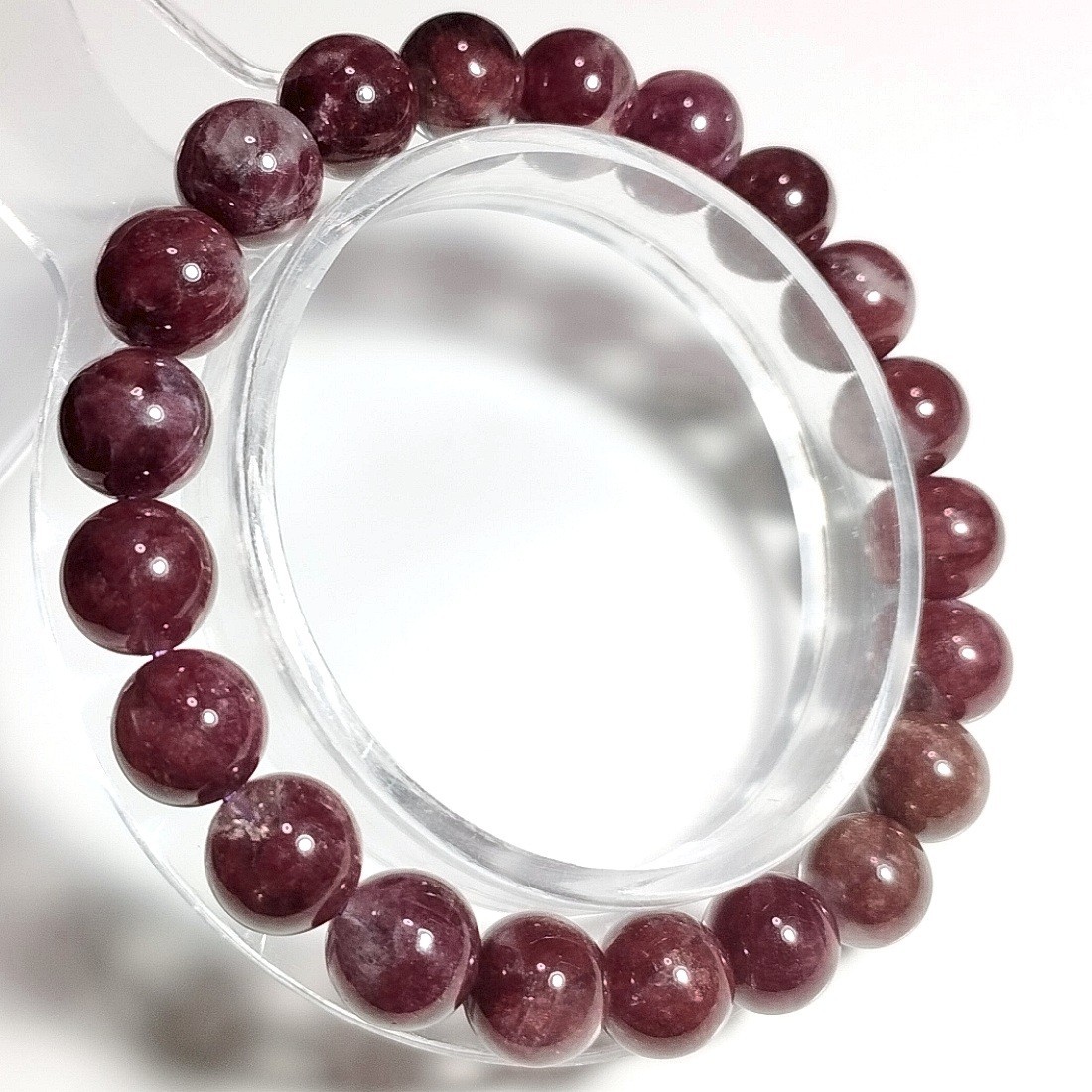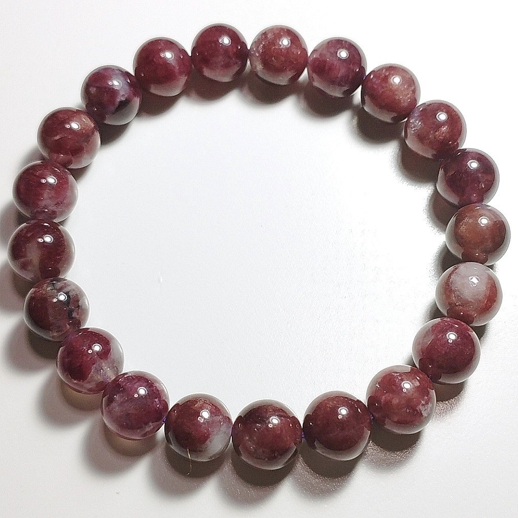 ピンクトルマリン部分の色が濃いめなので、パープルやレッドトルマリン(ルベライト)寄りのカラーに見えるブレスレットです。