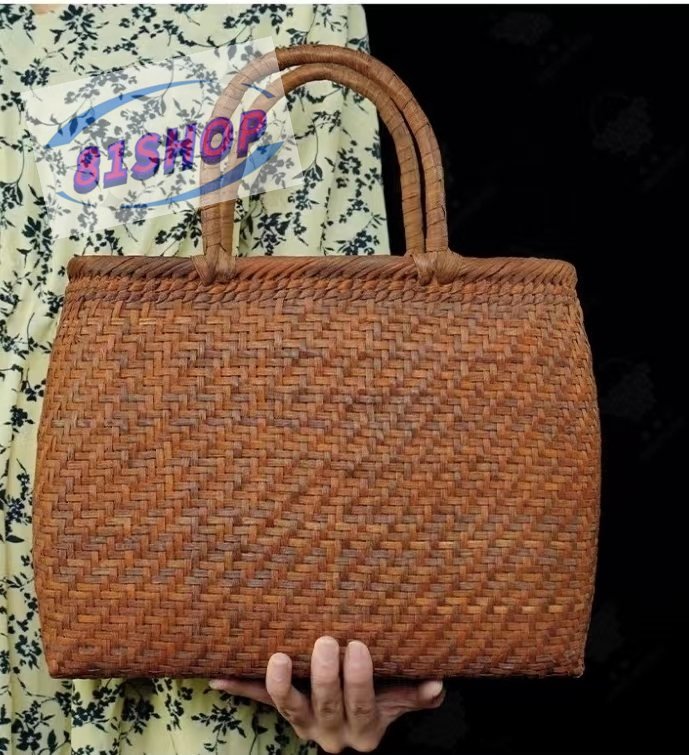 「81SHOP」極美品★山葡萄 かごバッグ 職人手作り良品 手編み山葡萄籠バッグ 高級UPハンドバック バスケット籐かご