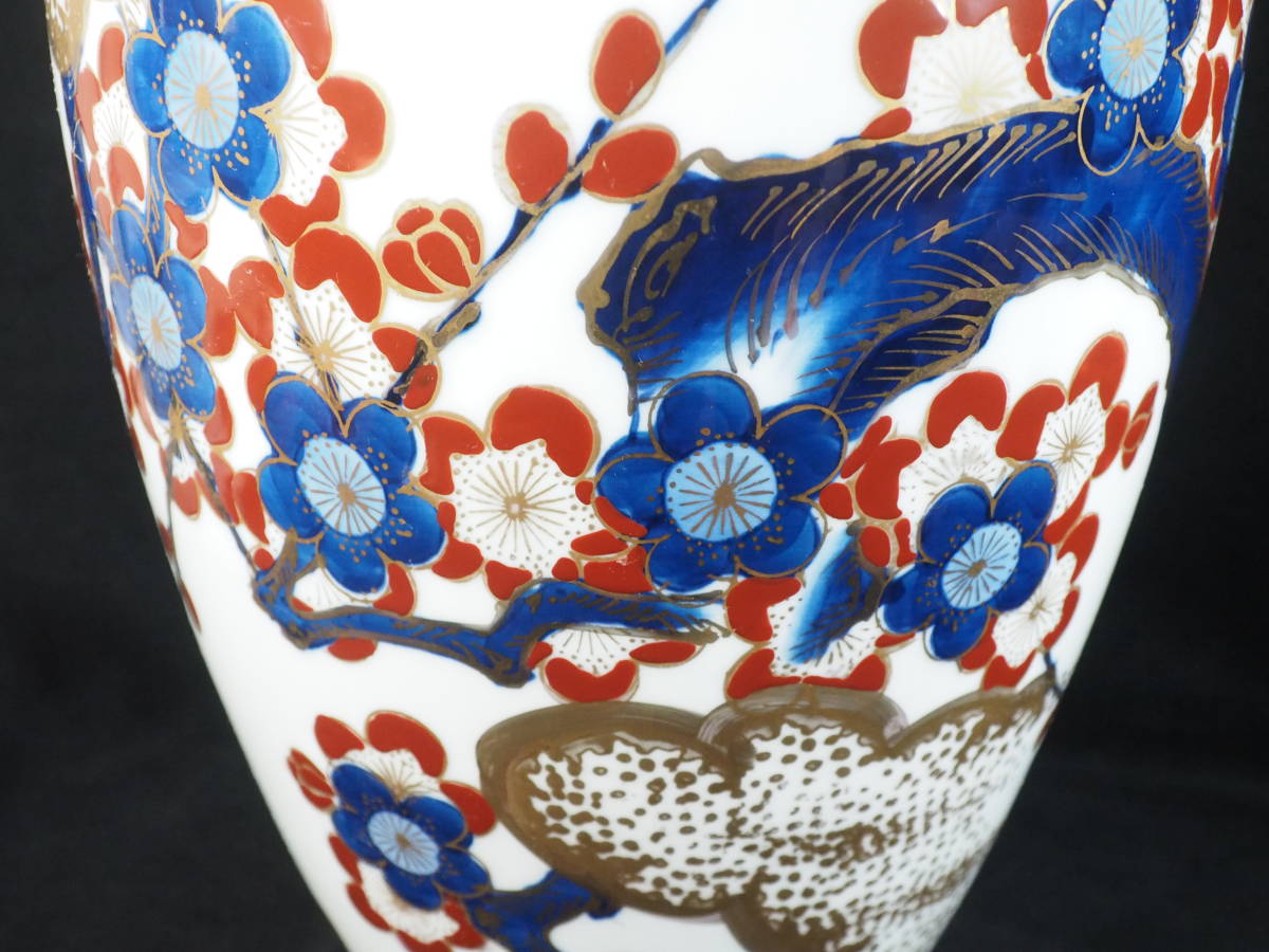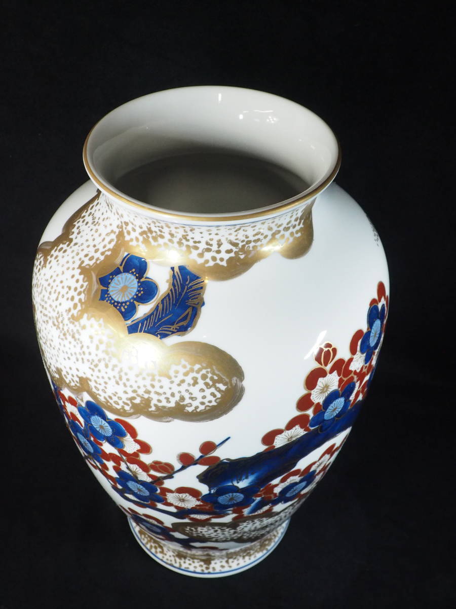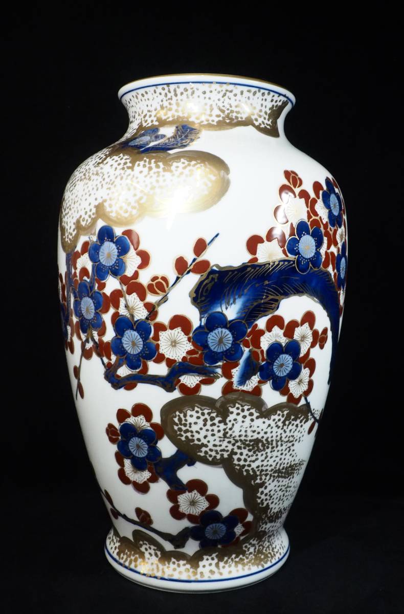 平成ビンテージ 有田焼 秀峰作 染付金彩赤絵梅の木紋金縁花瓶 在銘は秀峰 伝統工芸品 箱無し 2010年代 直径21cm 高さ37cm YTK507