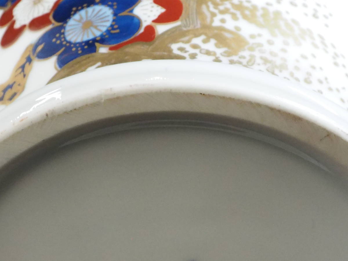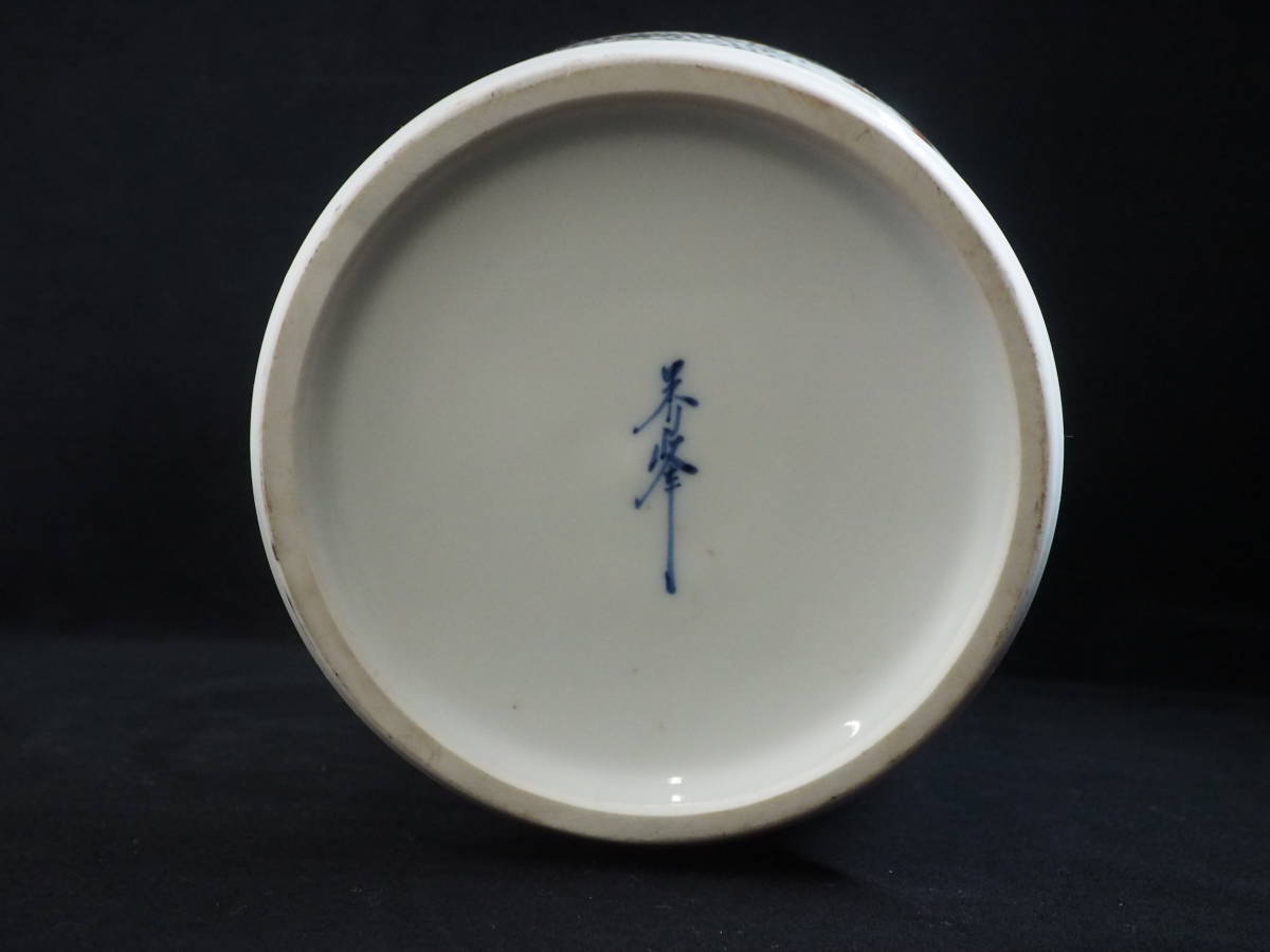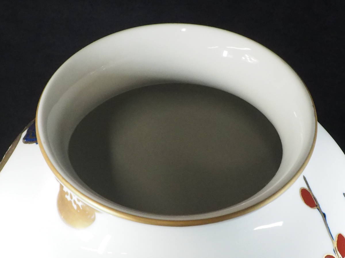 平成ビンテージ 有田焼 秀峰作 染付金彩赤絵梅の木紋金縁花瓶 在銘は秀峰 伝統工芸品 箱無し 2010年代 直径21cm 高さ37cm YTK507