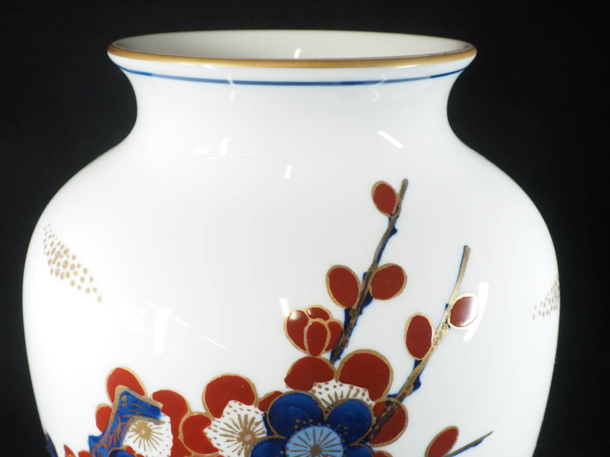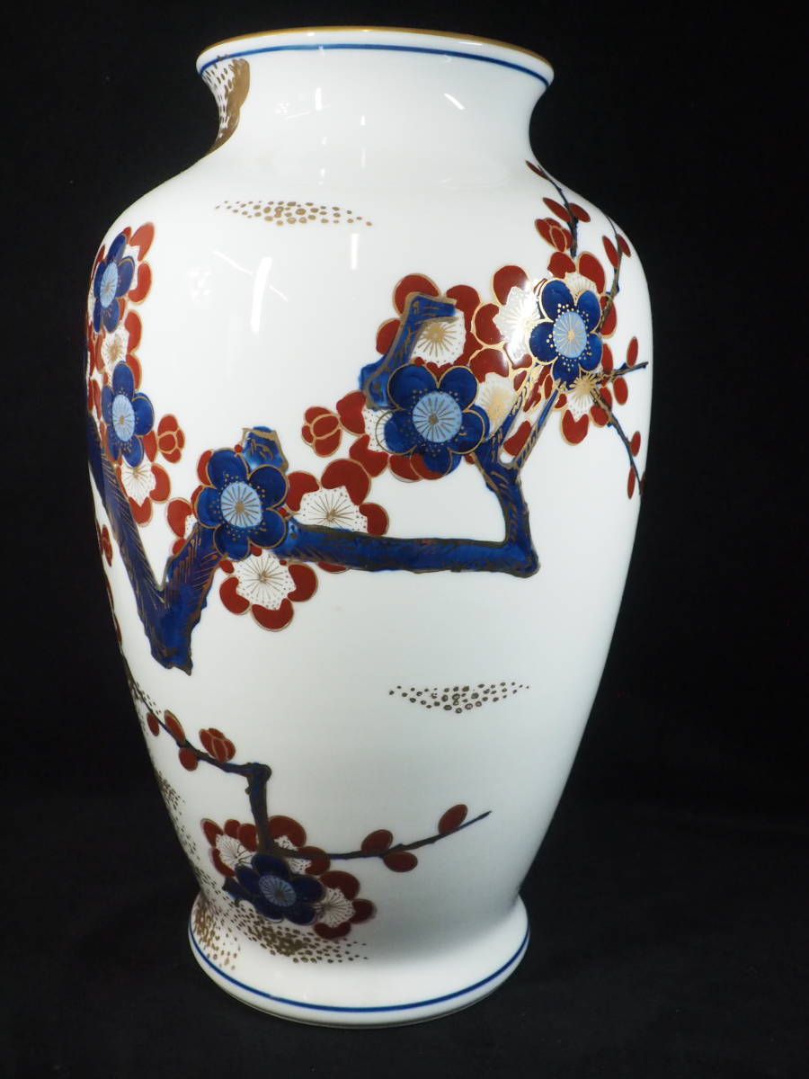 平成ビンテージ 有田焼 秀峰作 染付金彩赤絵梅の木紋金縁花瓶
