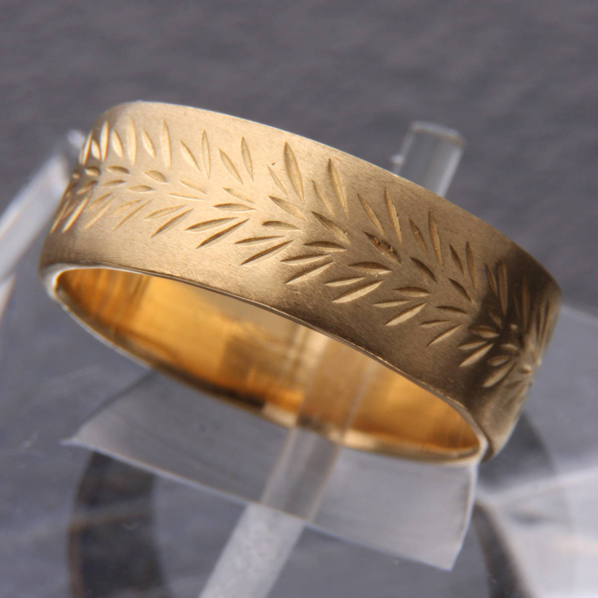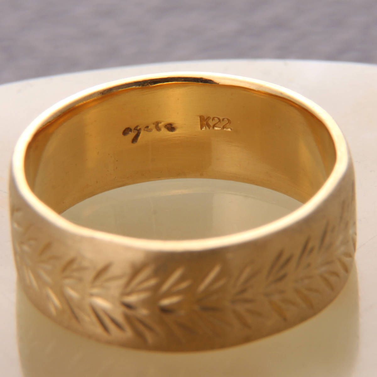 ke9617◆K22リング 平打ち/リーフ彫刻 agete 10号