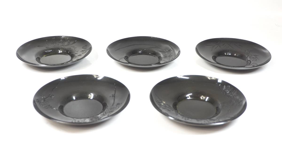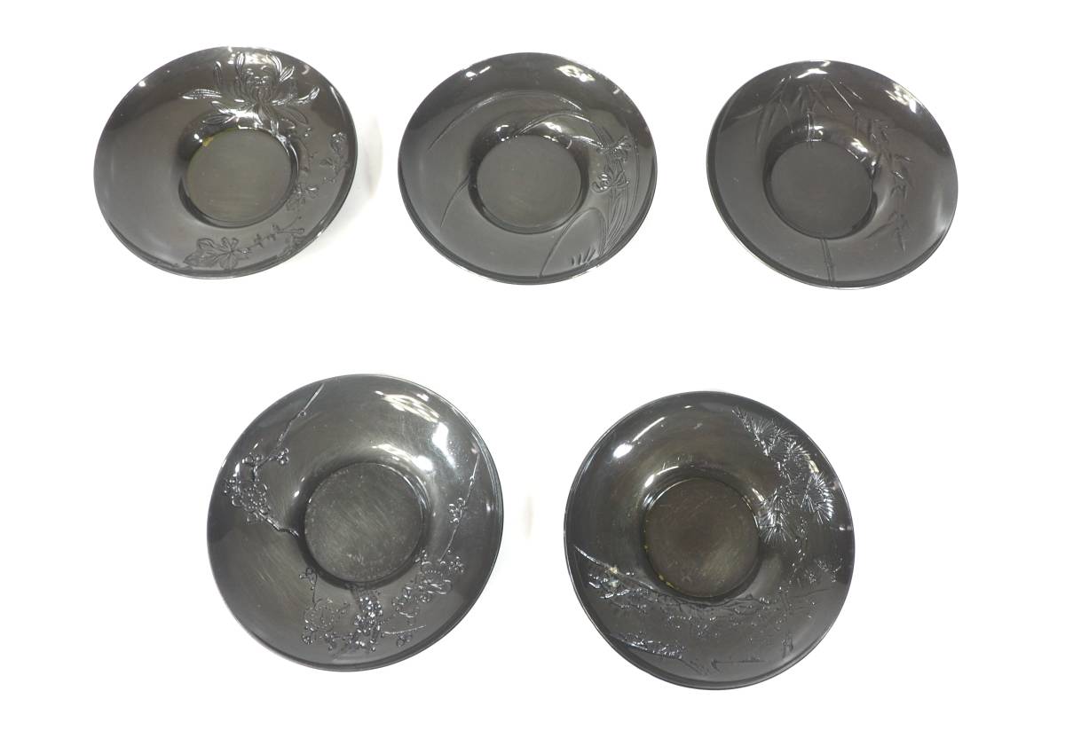 昭和ビンテージ 高岡銅器 瑞正作 銅製茶托五客揃 松竹梅 五つの草花紋様 富山県伝統工芸品 1980年代 YTK507