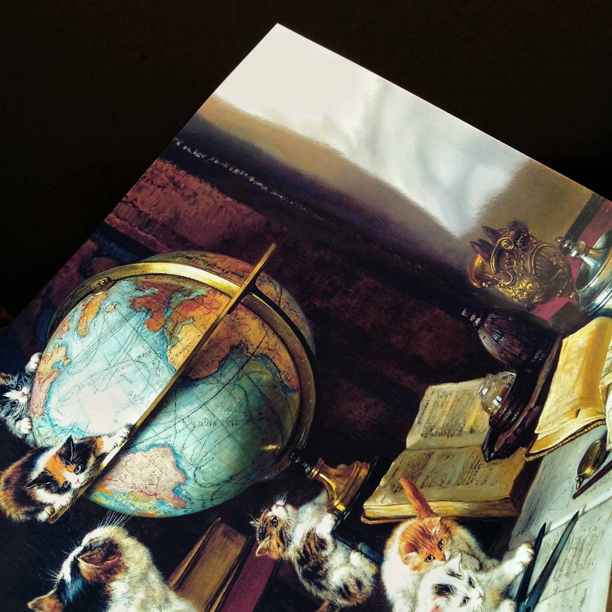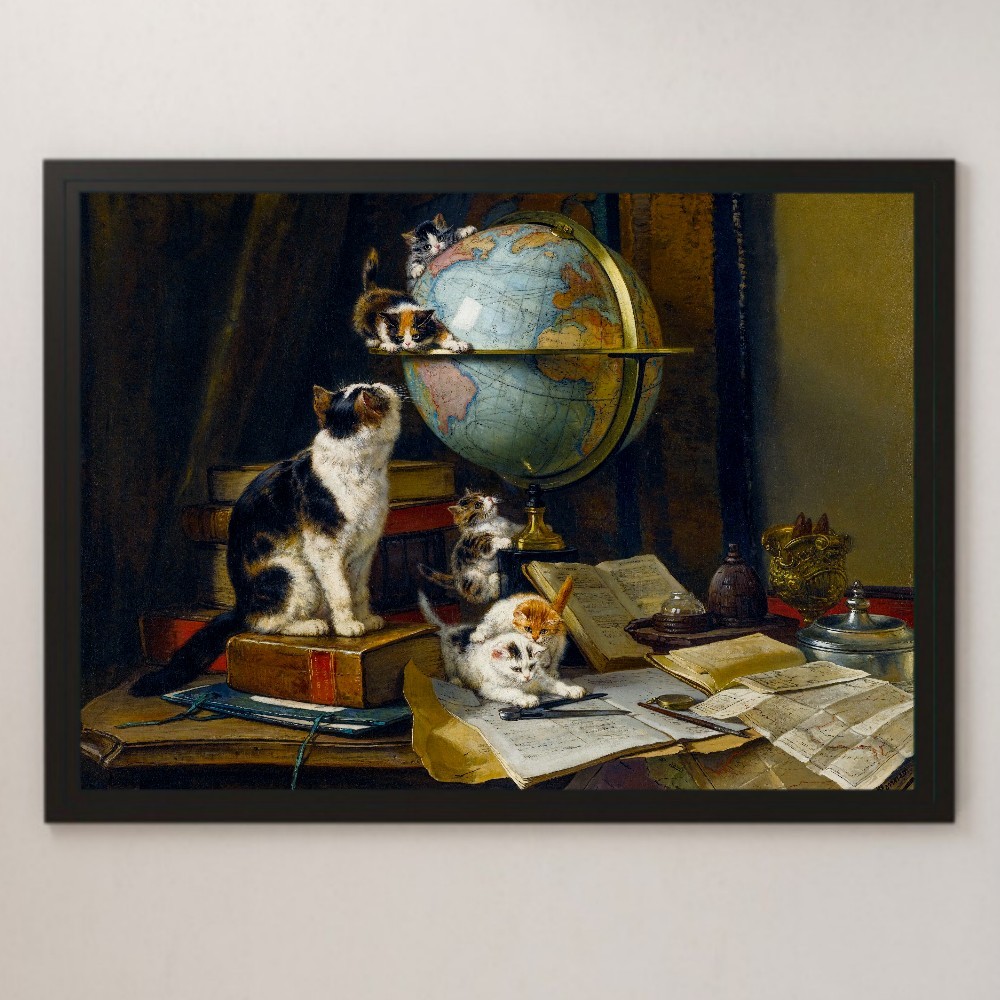 アンリエット・ロナー・ニップ『世界旅行者』絵画 アート 光沢 ポスター A3 バー カフェ ビンテージ クラシック インテリア 地球儀 子猫