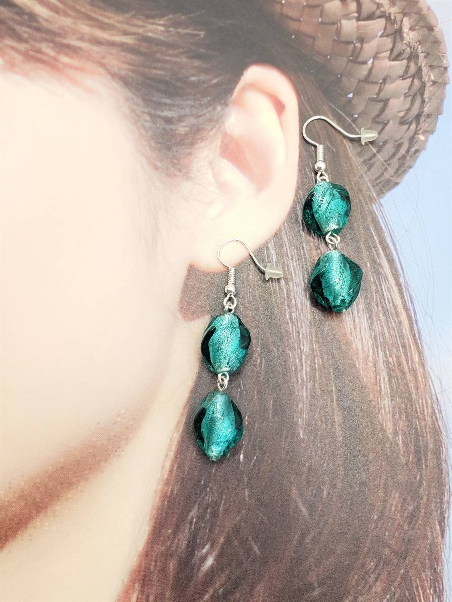 ★ハンドメイド イヤリングorピアス C226 樹脂フック・クリップ式イヤリング金具など変更無料 ランプワークガラス★