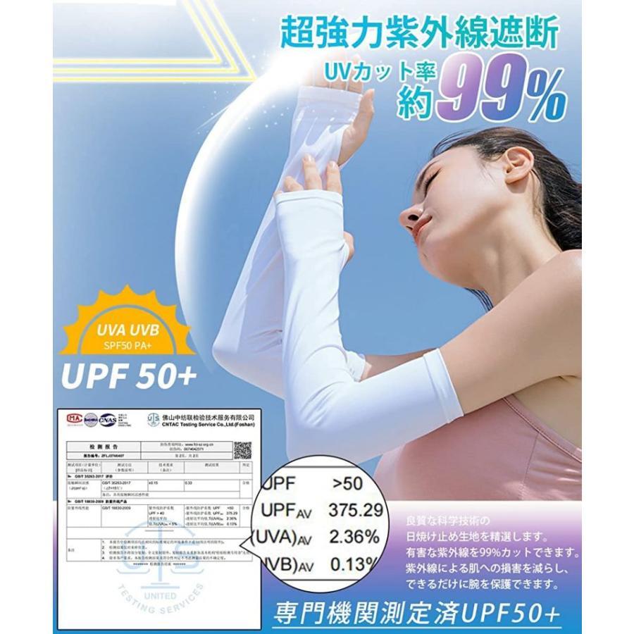 【UPF50+ UVカット率98%】日焼け止め生地を使用しますが、蒸し暑くなく、夏の着用の快適さを確保できるアームカバーです。太陽の有害な損傷から腕を最大限に保護できる紫外線吸収剤で処理されます。