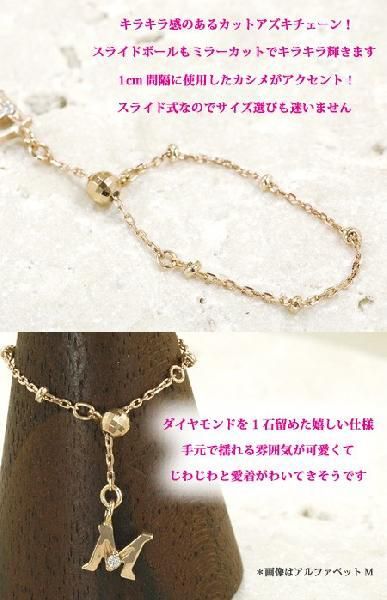想いをこめたイニシャルは自分へのご褒美にぴったり。スライド式のアジャスターが付いていますのでサイズ選びも迷いません。