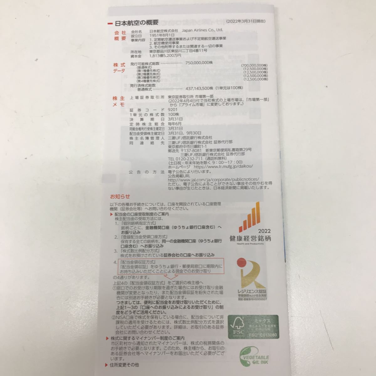 31622 0625Y JAL 日本航空 株主優待 割引券 冊子のみ