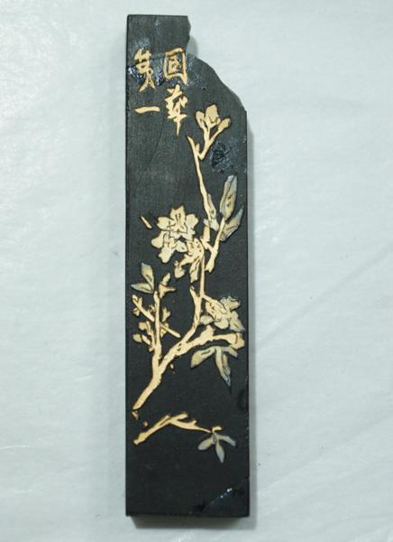 素材:墨。横2.4cm×縦9.8cm×厚み1cm。欠けています、使用跡あります。