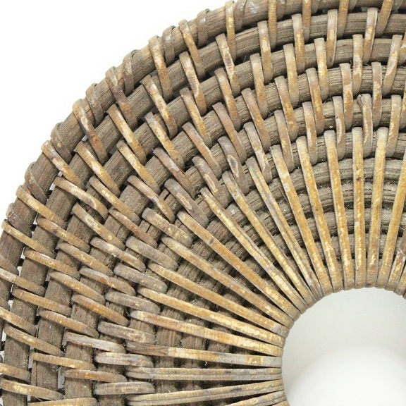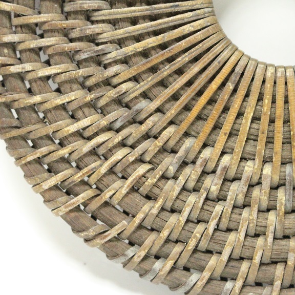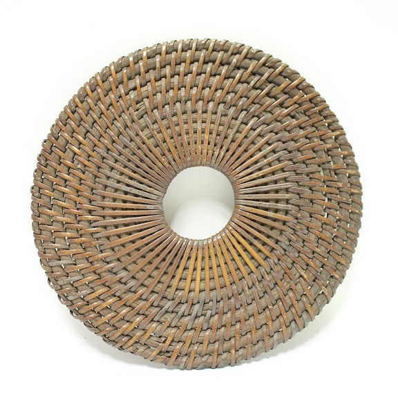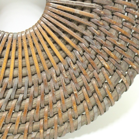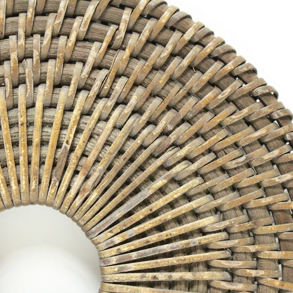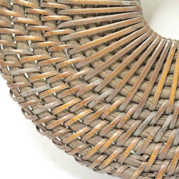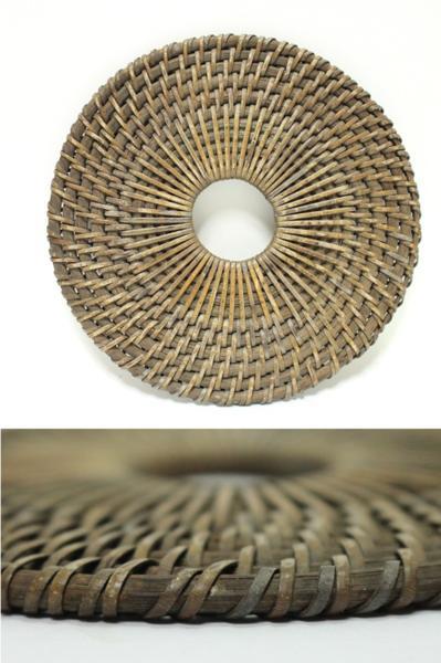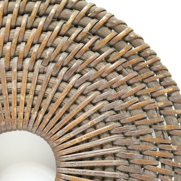 素材:籐。直径約13.6cm、内側直径約3cm。その他古いもので、経年の擦れ、汚れ、傷等ございます。状態は写真をご参照頂けますようどうぞよろしくお願いいたします。