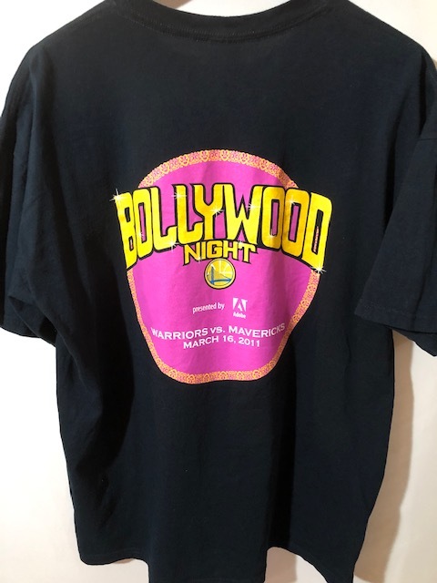 608★大きいサイズ ゆるダボ★USA古着 メッセージ&ロゴ両面プリントTシャツ got curry? BOLLYWOOD NIGHT 黒 ブラック GILDAN XL