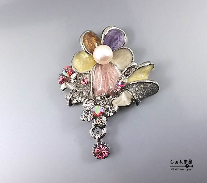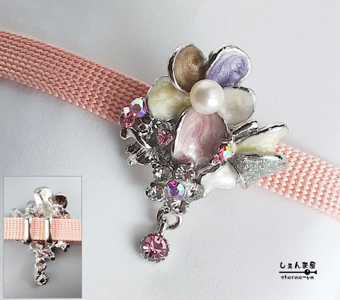 【 雅 】 三分紐専用♪ピンク 気品花。o○ 天然あこや本真珠 帯留め