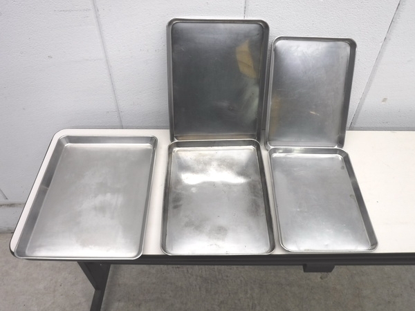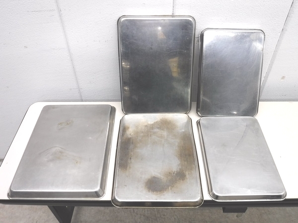 ◆ステンレス製◆角バット5枚セット サイズ:345×245×20mm 2枚 382×285×25mm 2枚 412×312×25mm 1枚 出品にあたりクリーニング済みです。 多少の傷・汚れ・使用感等がありますので、予めご了承ください。 画像をよくご確認の上、ご理解頂ける方のご入札をお願いいたします。 神経質な方はご入札をご遠慮ください。 気持ちの良いお取り引きにしたいと思いますので、ご不明な点等ございましたらお気軽にご質問ください。 | |