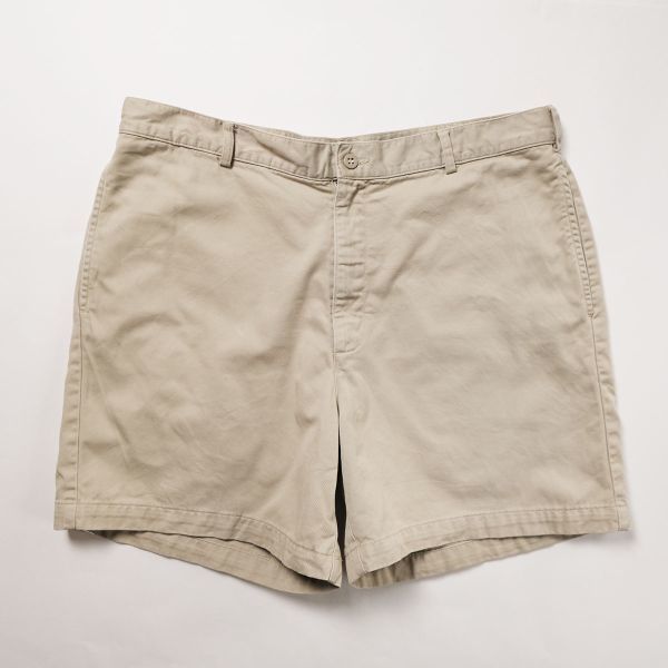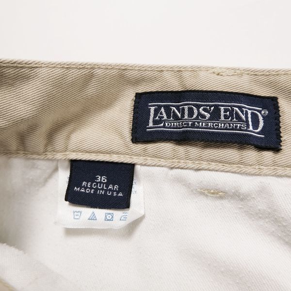 90's USA製 ランズエンド ノータック コットン チノショーツ (36) カーキ系ショートパンツ 90年代 アメリカ製 旧タグ オールド LANDS'END