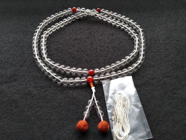 数珠 禅宗風 白水晶 メノウ 凡天房 菊房 (22_10330_1)