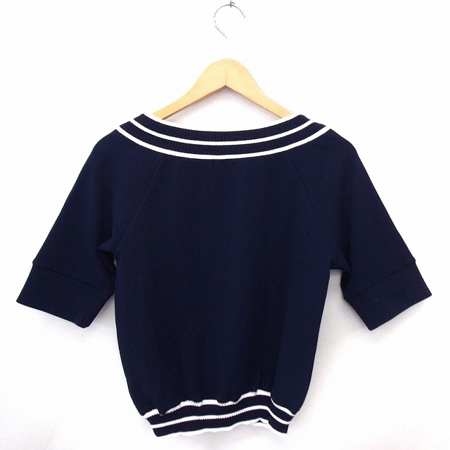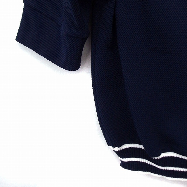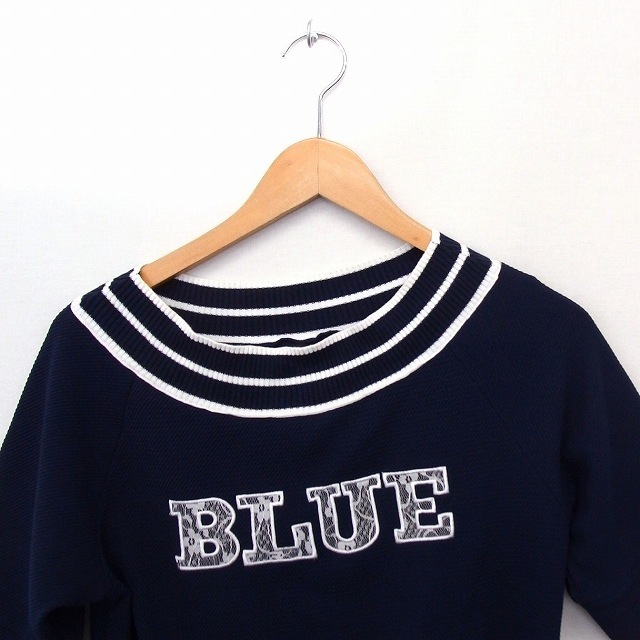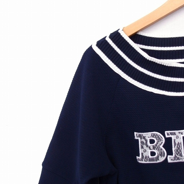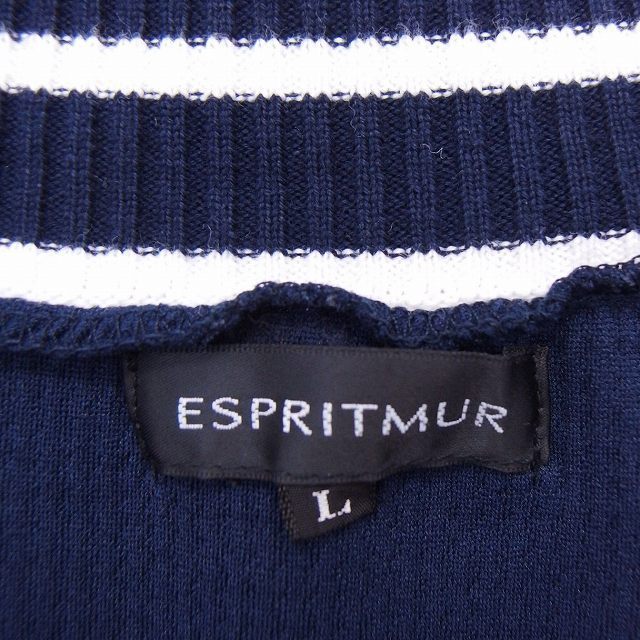 エスプリミュール ESPRITMUR Tシャツ カットソー リグ レースロゴ 五分袖 L ネイビー 紺 /FT47 レディース