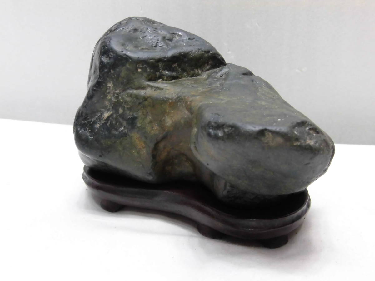 日本石百選、トロ黒マグロ、フ入神居古潭石(黒く写真より綺麗=右側ドハ=下=持ち出し)北海道、旭川産