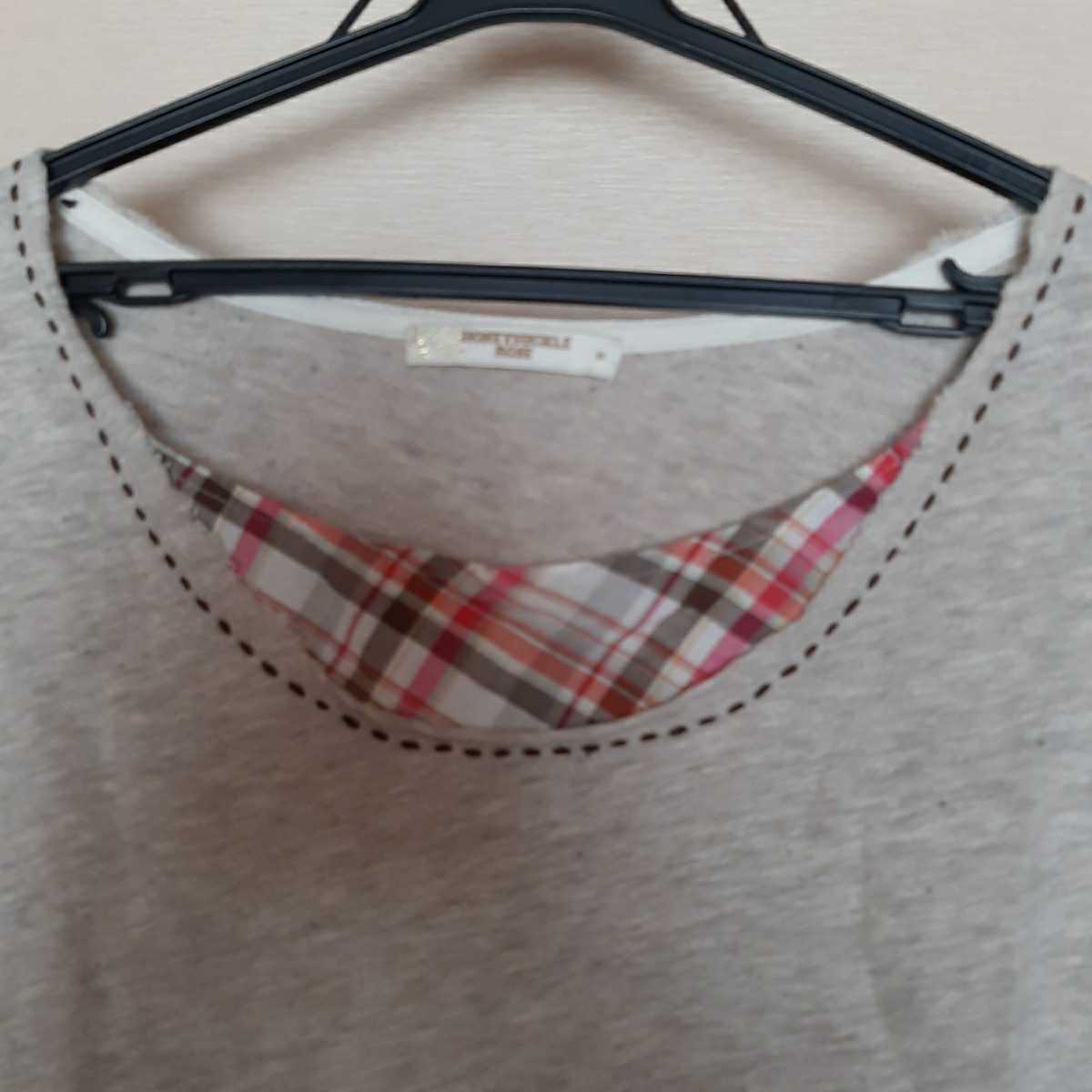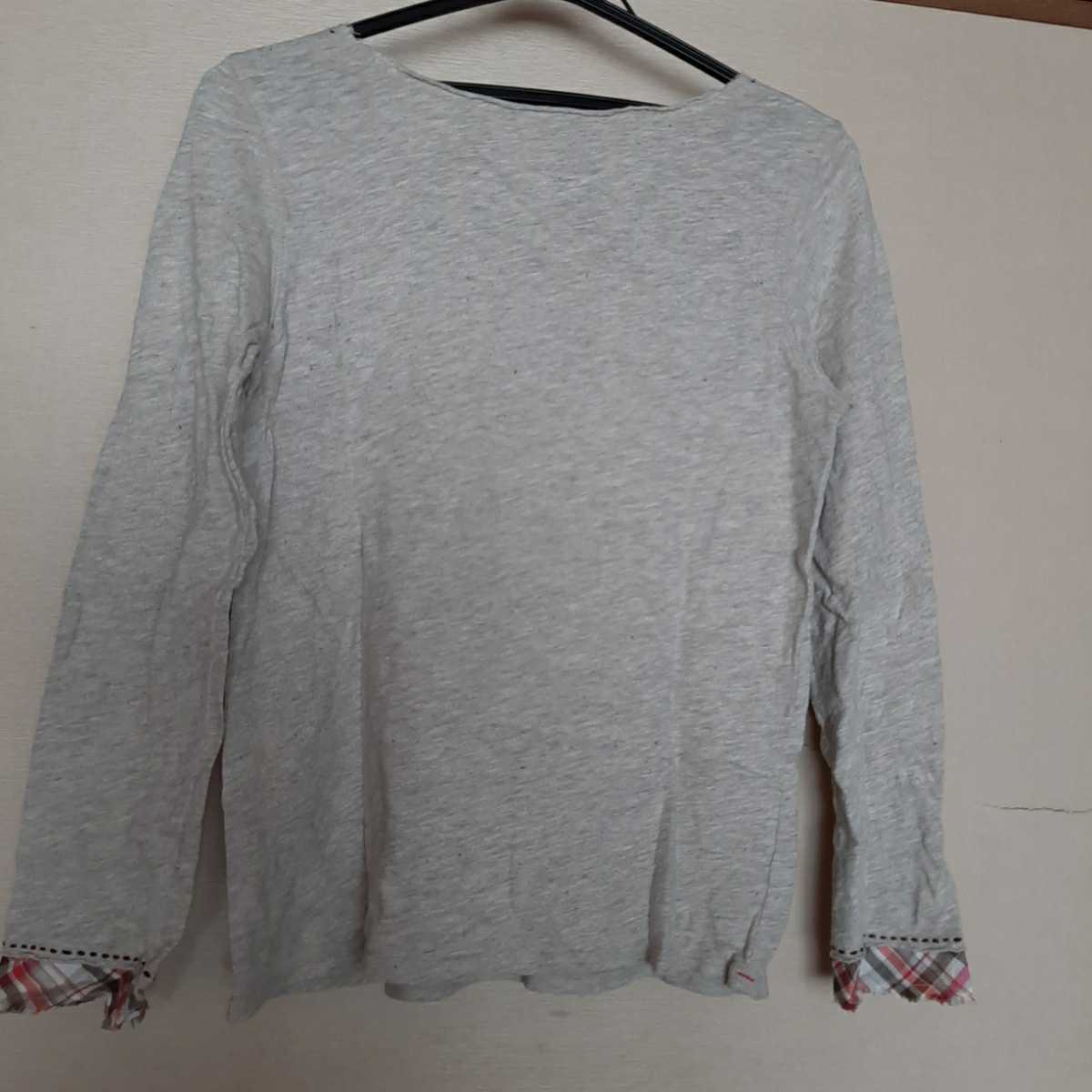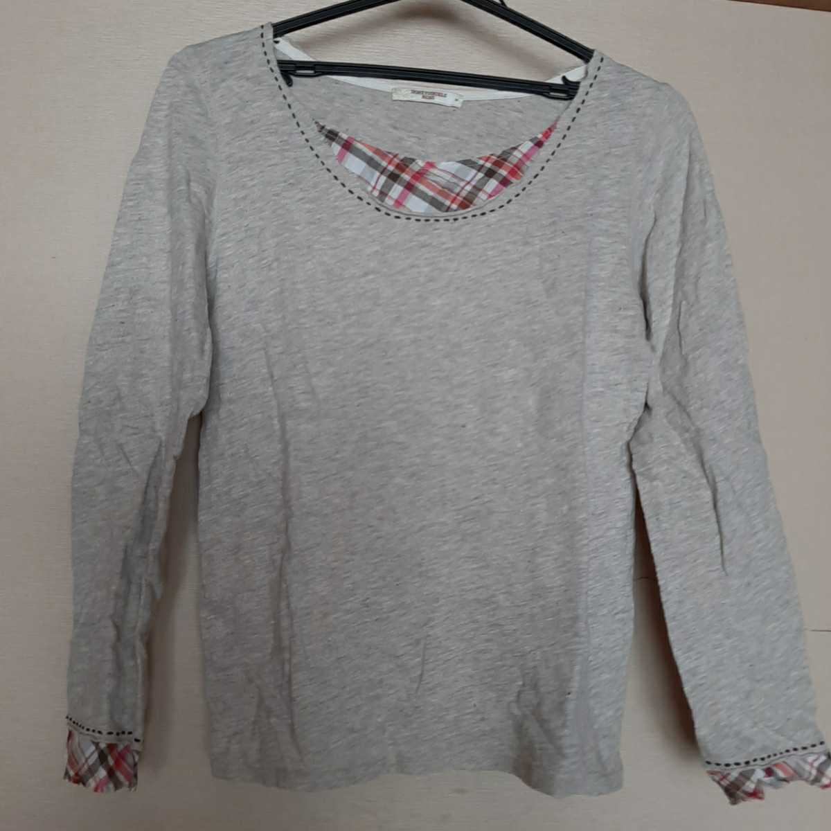 Right-onのHONEYSUCKLE ROSEブランドの杢サンドベージュにチェック生地使いのカットソー*