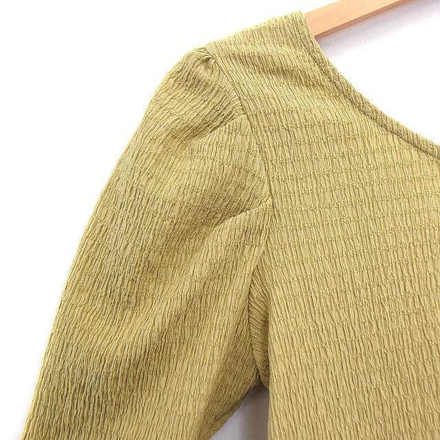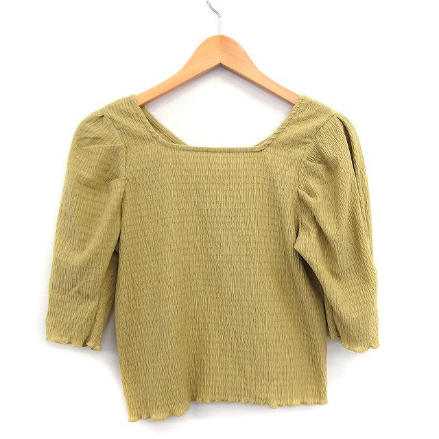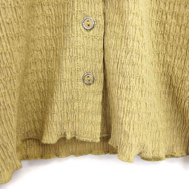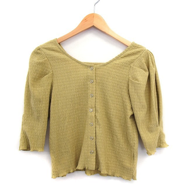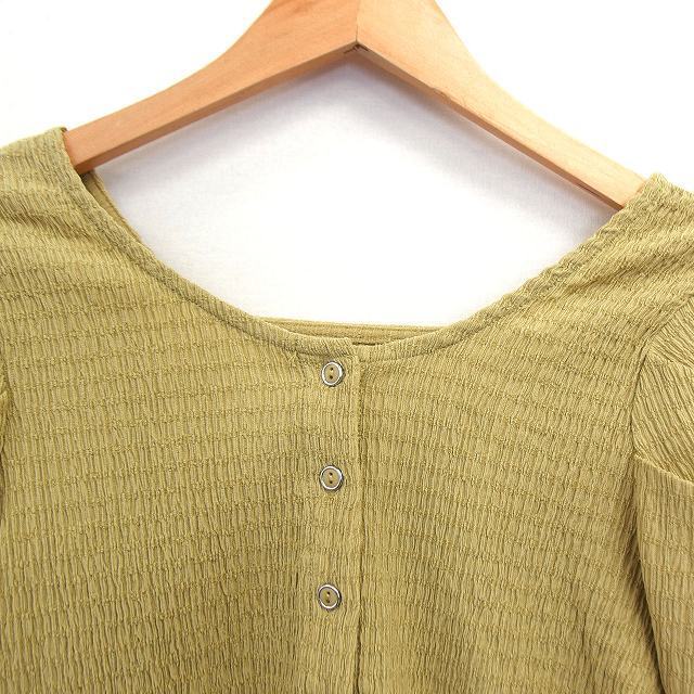 アルシーヴ archives カットソー フロントボタン 丸首 七分袖 総柄 くしゅくしゅ グリーン 緑 /HT22 レディース