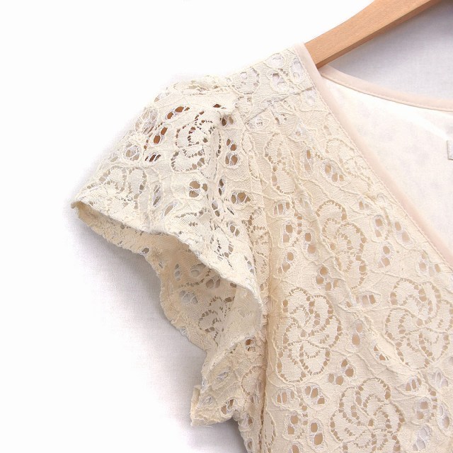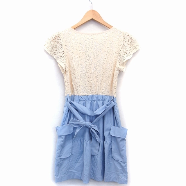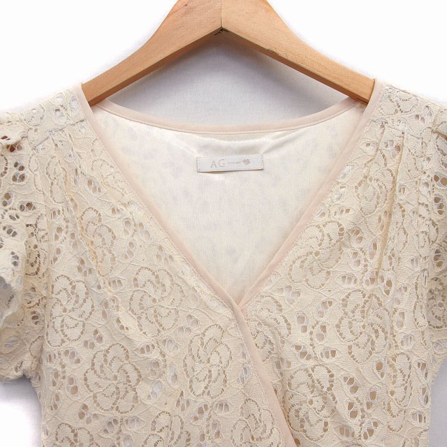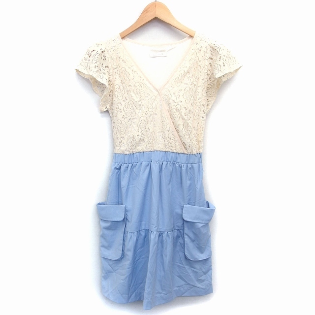 エージーバイアクアガール AG by aquagirl ワンピース 膝上 ミニ Vネック 半袖 切替 レース 花 柄 S ベージュ 青 /HT25 レディース