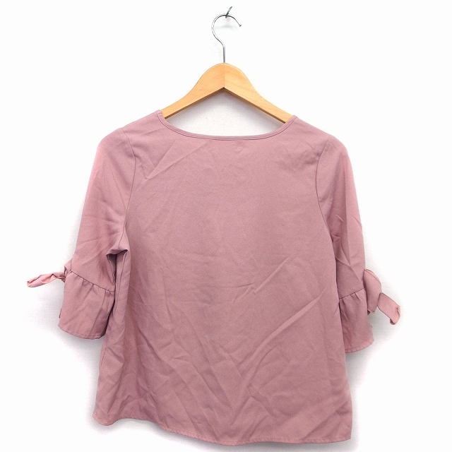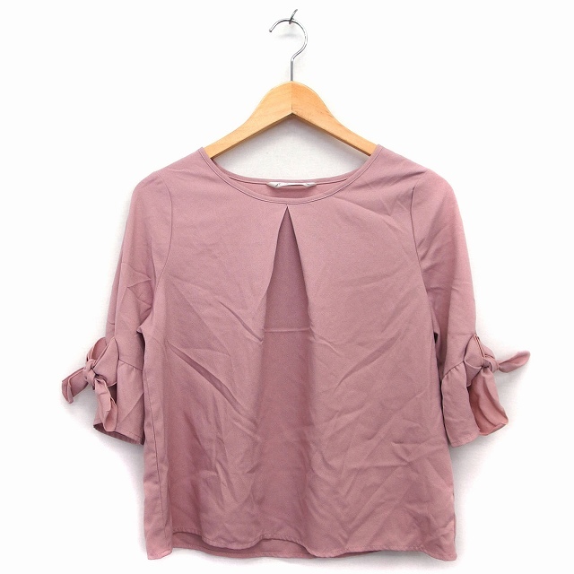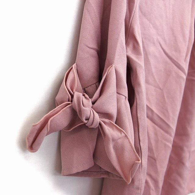 神戸レタス Kobe lettuce カットソー 七分袖 丸首 無地 シンプル リボン タック ピンク パープル 紫 /HT33 レディース