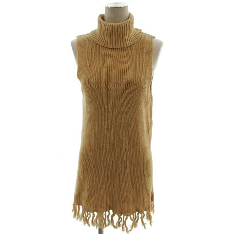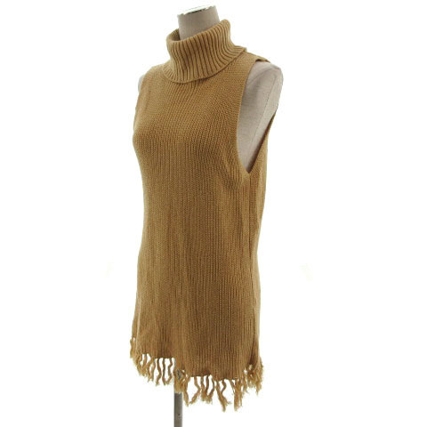 ボンメルスリー BON MERCERIE ニット ノースリーブ タートルネック フリンジ ブラウン系 茶系 ブラウンベージュ 38 レディース
