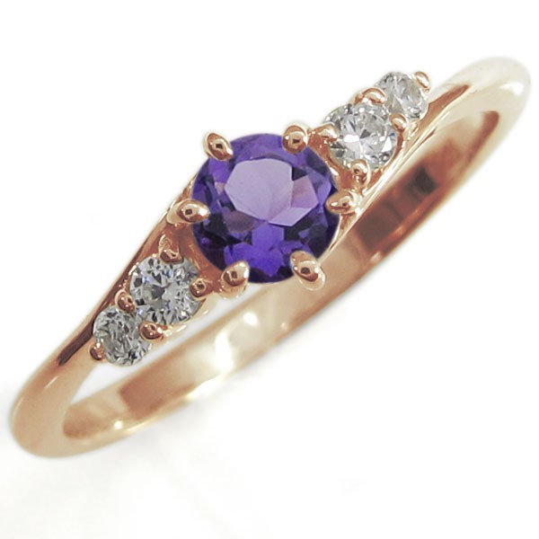 2月誕生石アメジストを使用した18金製の、シンプルデザインリング(指輪)です。