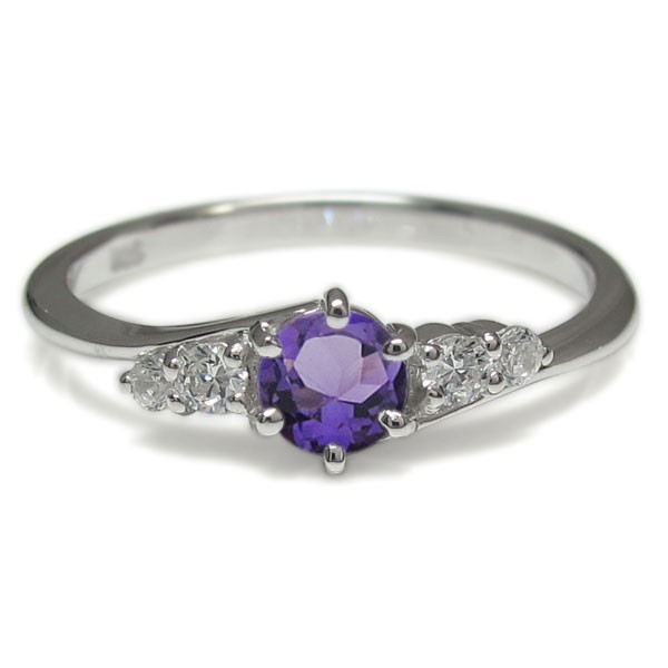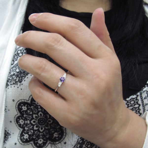 ■石名:主石 アメジスト(約 4.0mm/天然石使用)脇石 ダイヤモンド(4石合計で約 0.068ct/天然石使用)